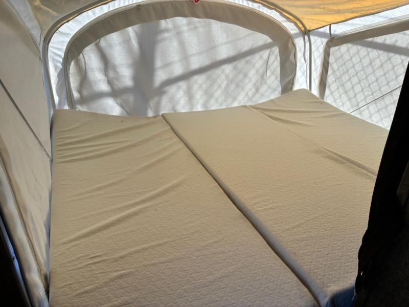 The very front features a second tent end expandable bed with a convenient overhead shelf and much more!