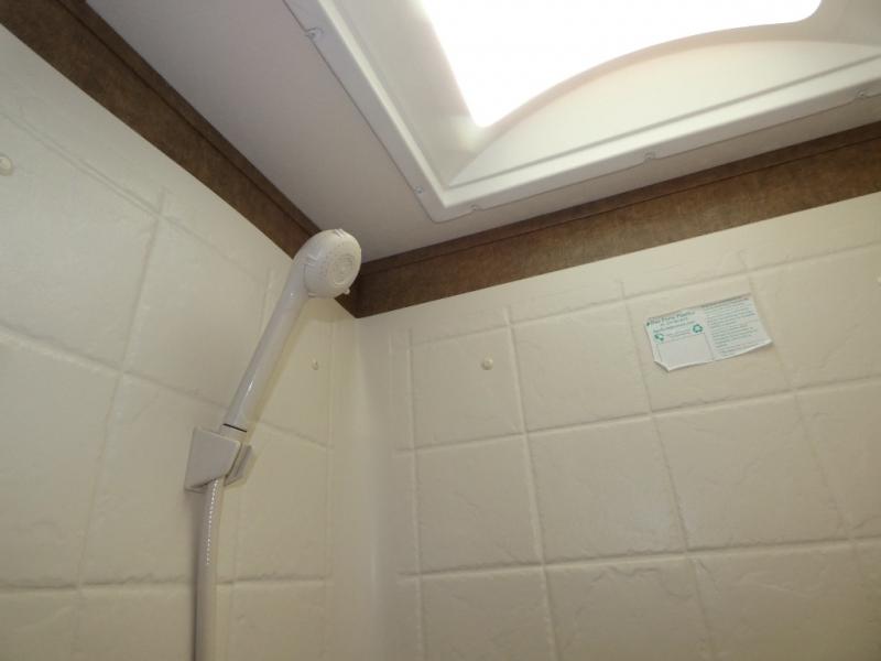 The rear queen tent end bed features an overhead shelf for storage. There is also exterior storage in front that can be accessed from either side, and so much more!