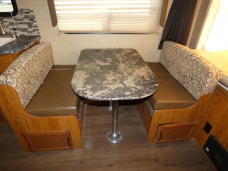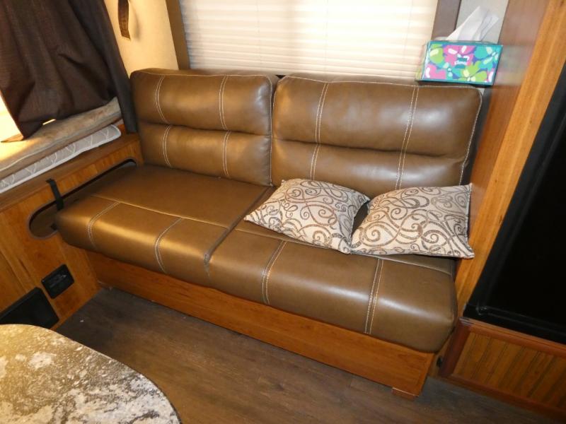 There is a booth dinette for dining in the rear, and a sofa opposite which makes a perfect conversation area. Both can be used for additional sleeping space if needed too.