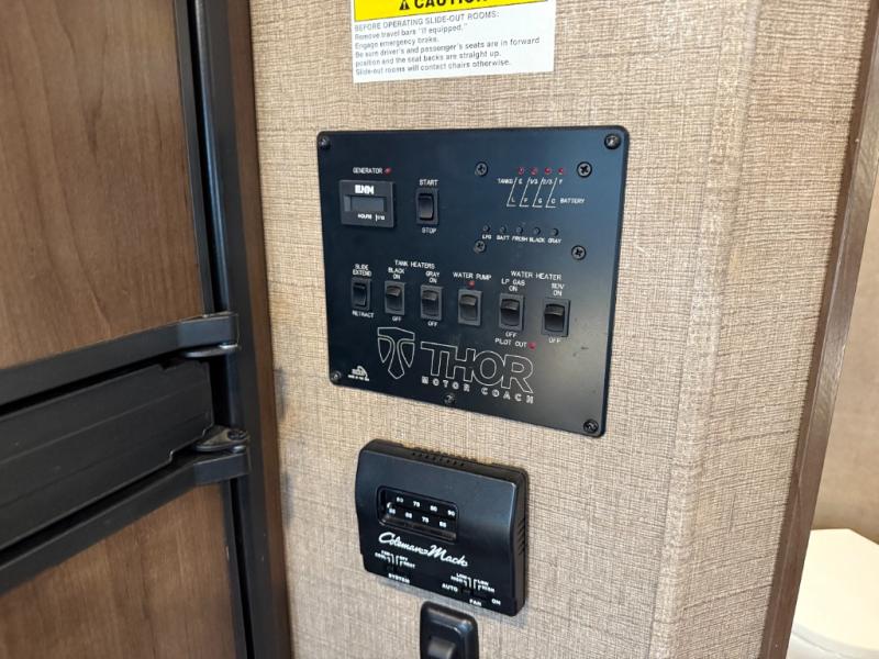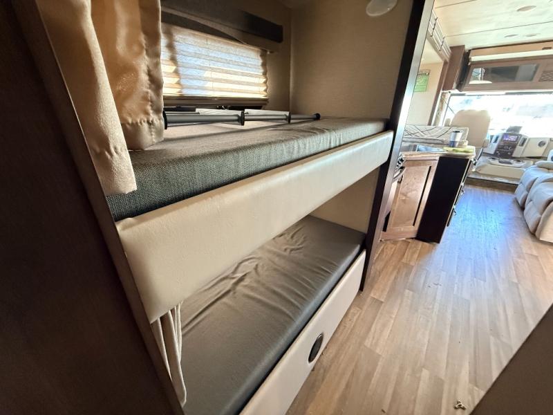 This Thor Motor Coach A.C.E. class A motorhome model 30.2 features a full wall slide out for added interior space, a set of bunk beds, dual entry bath, and all that you need to enjoy traveling the countryside!