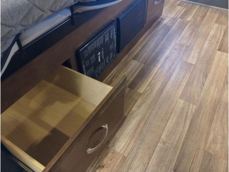 A sliding door just outside the bathroom door leads into the rear master which provides a king size bed, plus a closet and dresser that includes a 32" LED TV all part of the bathroom slide, plus so much more.