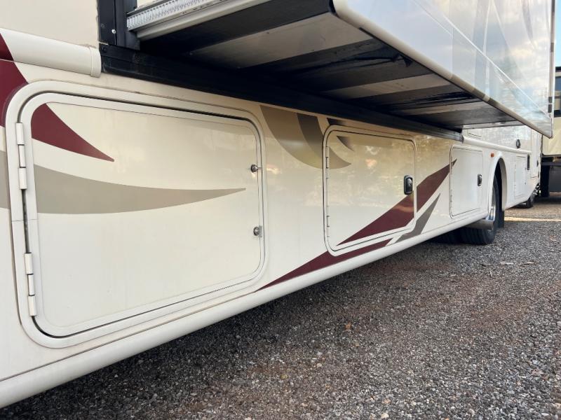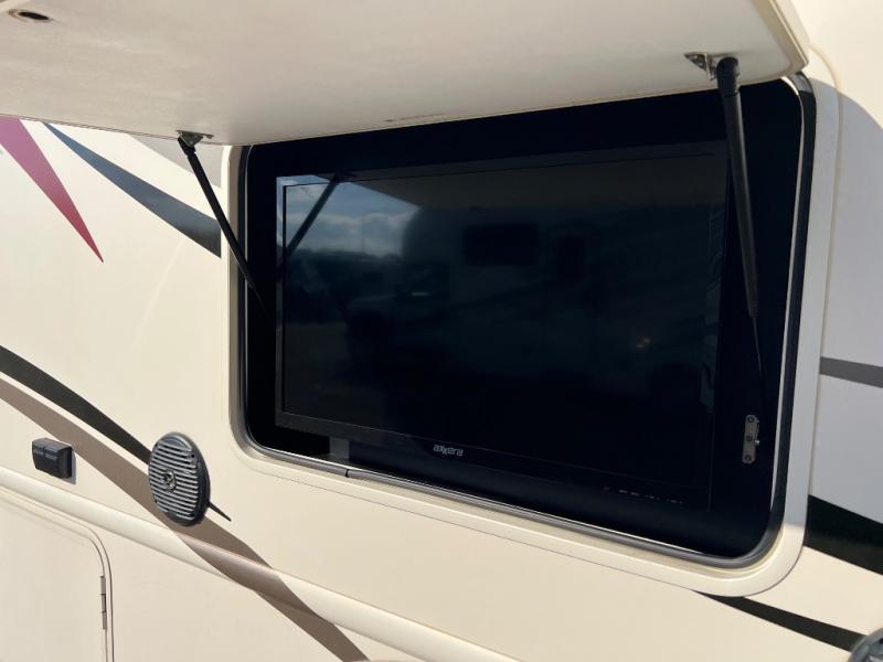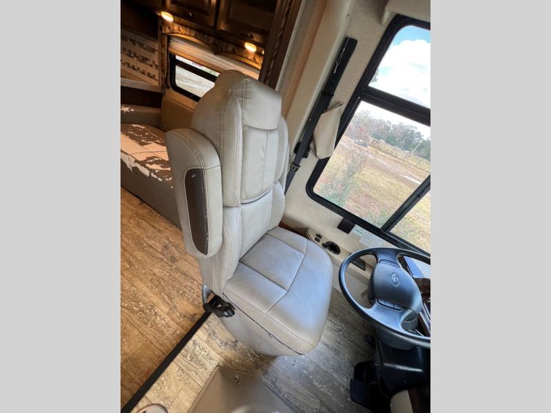 When you are ready for your next trip across the country, choose to do so in style and comfort with this 31Z Hurricane Class A gas motor home by Thor Motor Coach. This model features dual opposing slide outs in the combined kitchen and living area, an exterior TV, plus there is sleeping space for seven people!