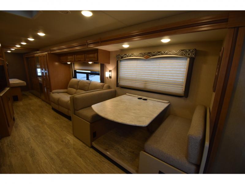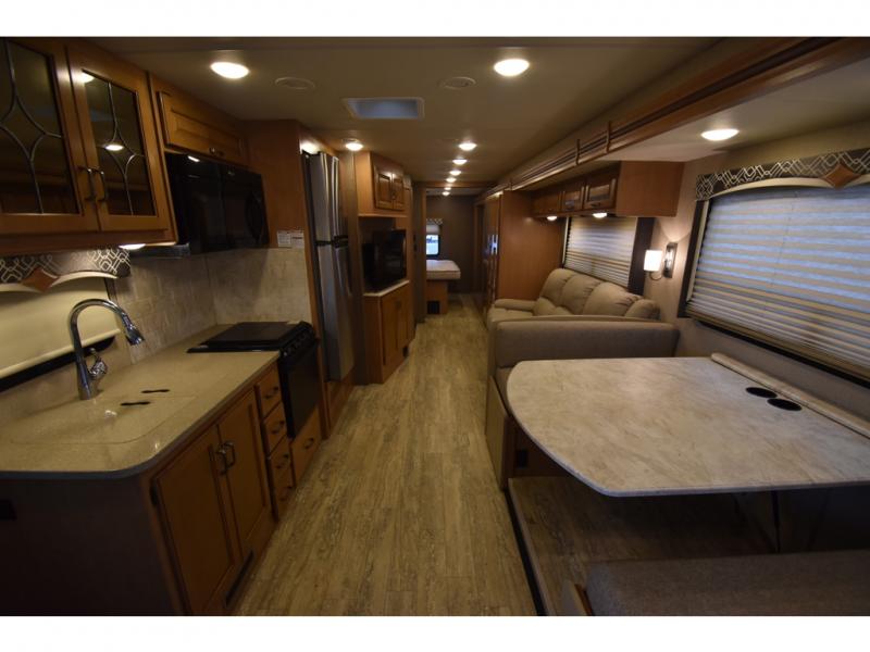 Just Arrived!! Come take a look!!As you enter the Hurricane 34F Class A gas motor home by Thor Motor Coach, you will notice a full wall slide out along the driver's side that opens up this whole coach. Within the living area, there is a dream dinette, and a sofa along with overhead cabinets. Just beyond the sofa, there are two wardrobes, one that includes washer/dryer prep.