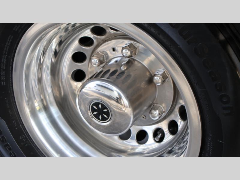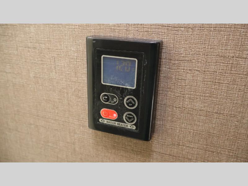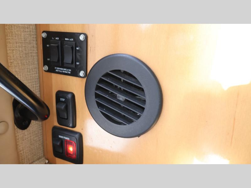 Model 24SS offers double slides, a rear corner bath, and cab-over bunk for an added 36" x 75" sleeping space. Enter just behind the front passenger seat and notice the 32" LED TV overhead. To your immediate left there is a kitchenette that will allow you to easily make meals and snacks on the road. There is a round single sink, some counter space, and a two burner range top, plus overhead microwave oven. There is also a refrigerator for your perishables.