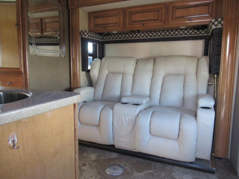 The opposite side along the road side is where you will find a 70" slide out Dream Dinette with overhead storage. There are also two sets of seat belts to keep your back seat travelers safe when heading down the road. You can opt. to choose a sofa bed and pedestal table instead, or the optional reclining theater seating instead of the Dream Dinette, the choice is completely yours. Just off the slide out you will find a closet for clothing storage too.