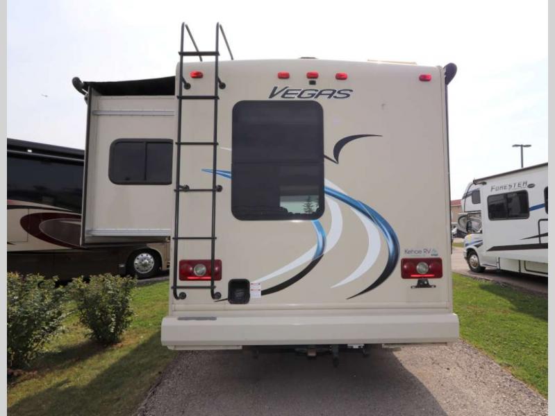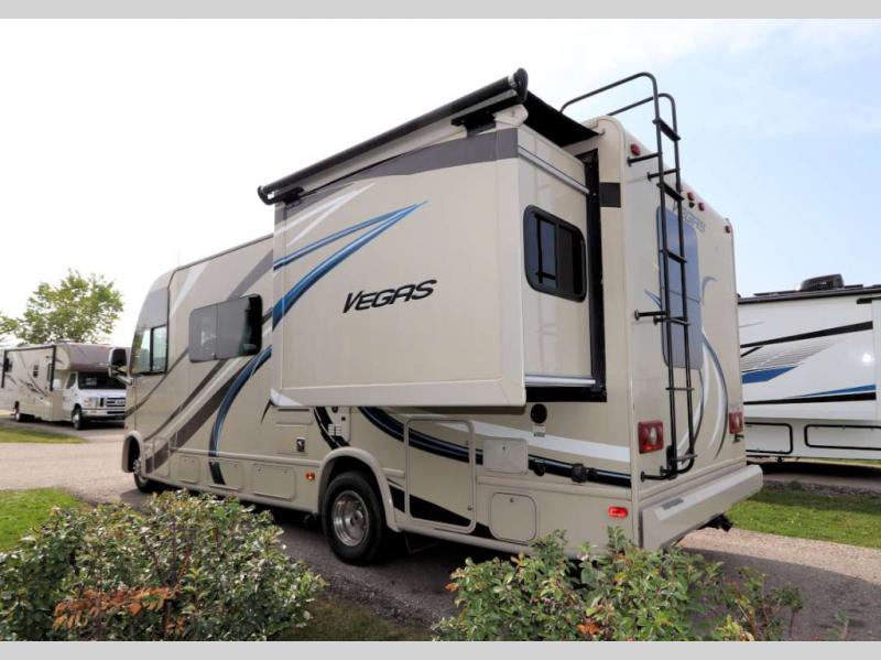 This Thor Motor Coach Vegas model 25.3 class A gas motorhome features a rear bedroom with side queen bed slide out, a rear corner bath, plus all of the amenities you need to comfortably spend time on the go.