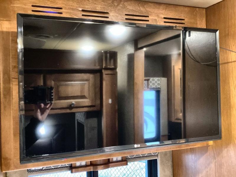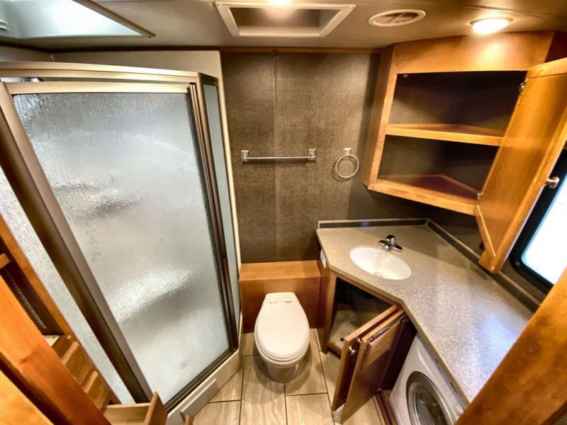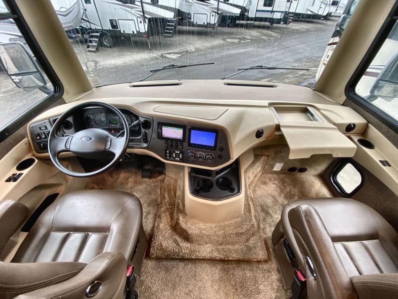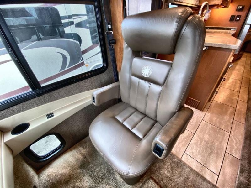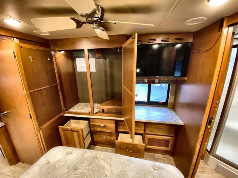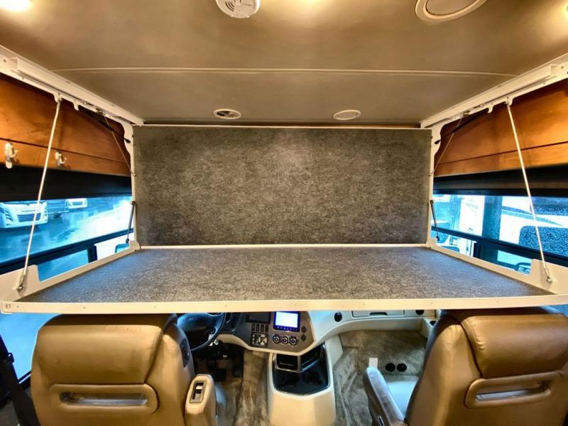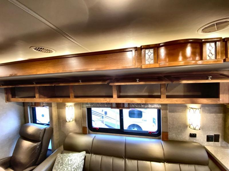 Step into this Allegro 36 LA class A motorhome to find two captain's chairs and overhead cabinets at each side in the front of the coach. There is also a TV above the cab for your viewing pleasure.