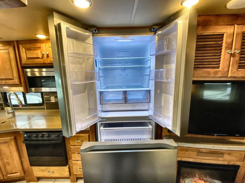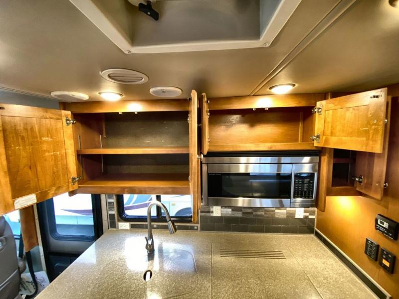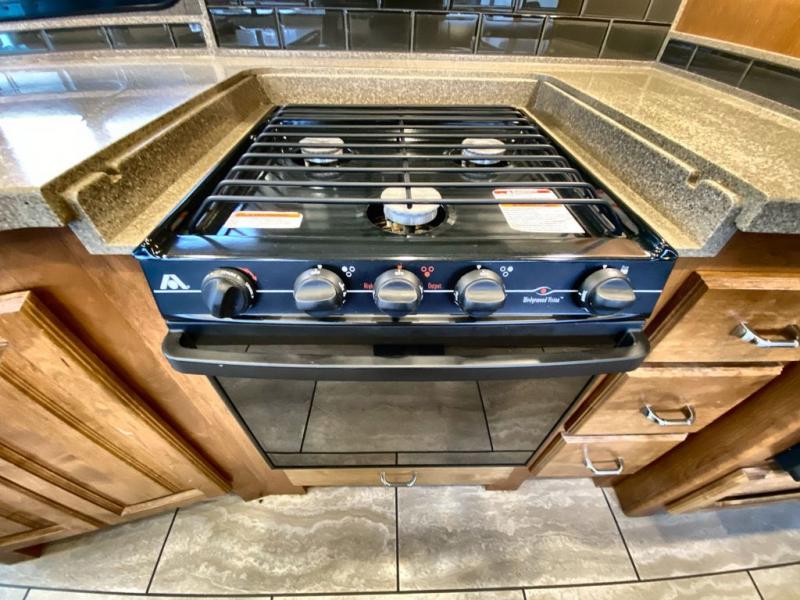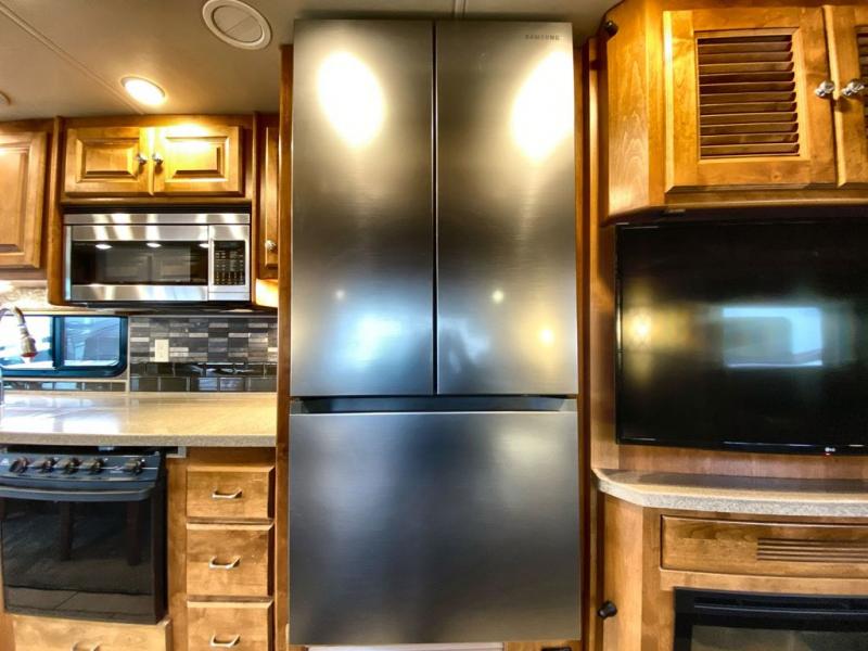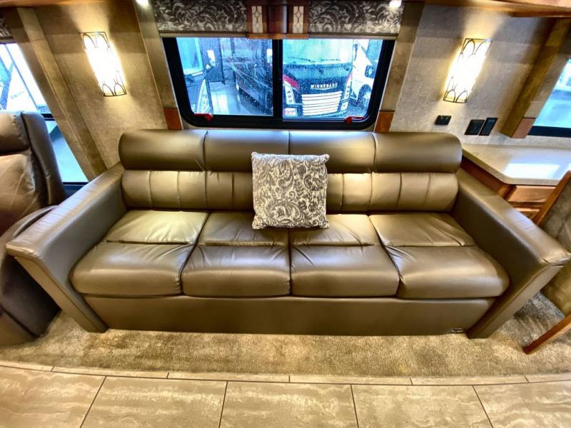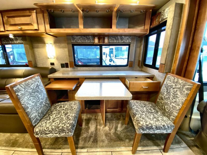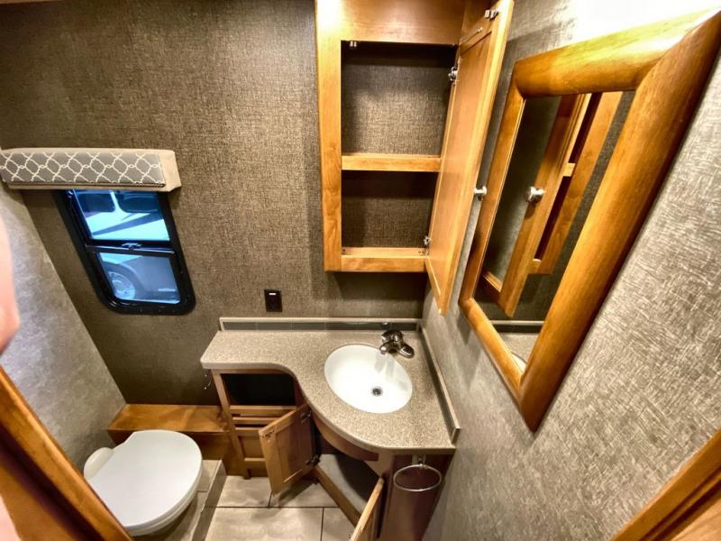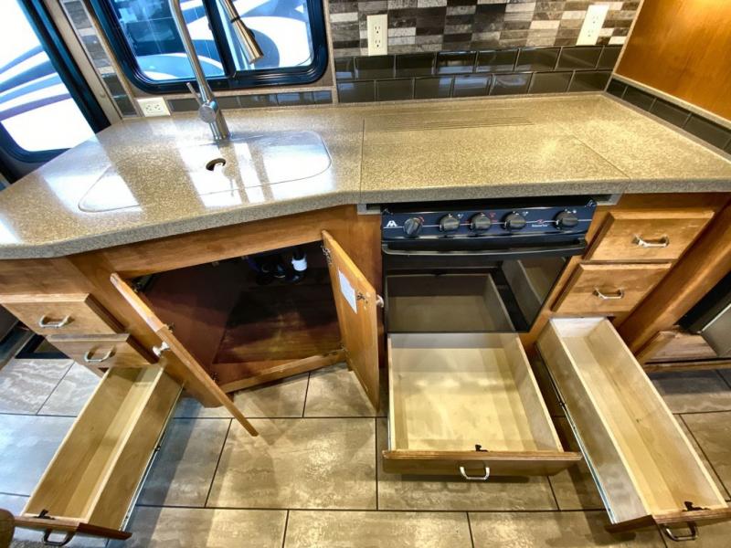 Step into this Allegro 36 LA class A motorhome to find two captain's chairs and overhead cabinets at each side in the front of the coach. There is also a TV above the cab for your viewing pleasure.