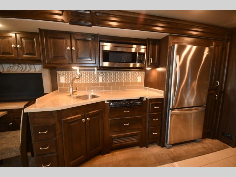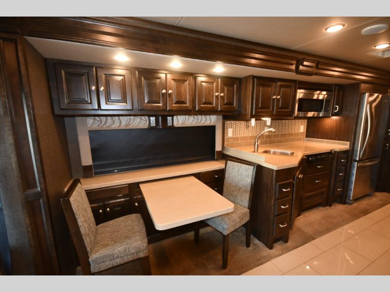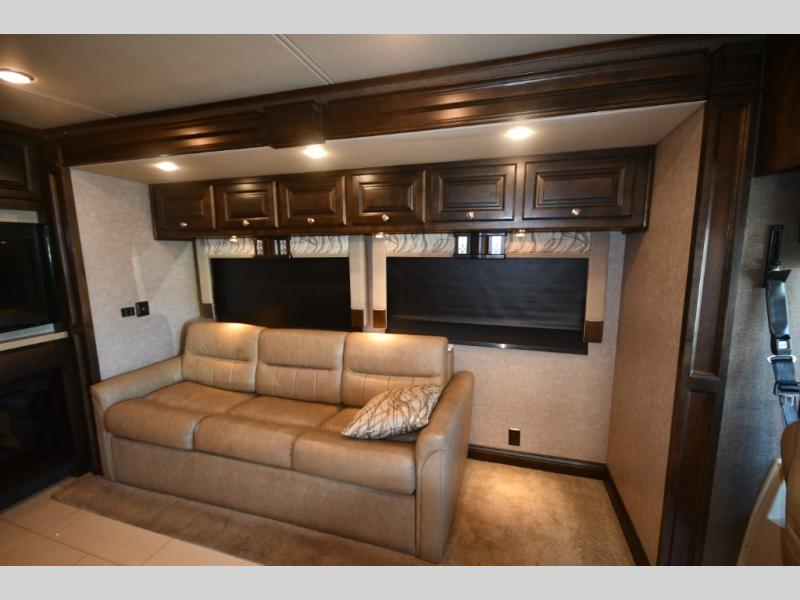 With all four slide-outs extended, the interior opens up to a bright, comfortable living space perfect for relaxing or entertaining.