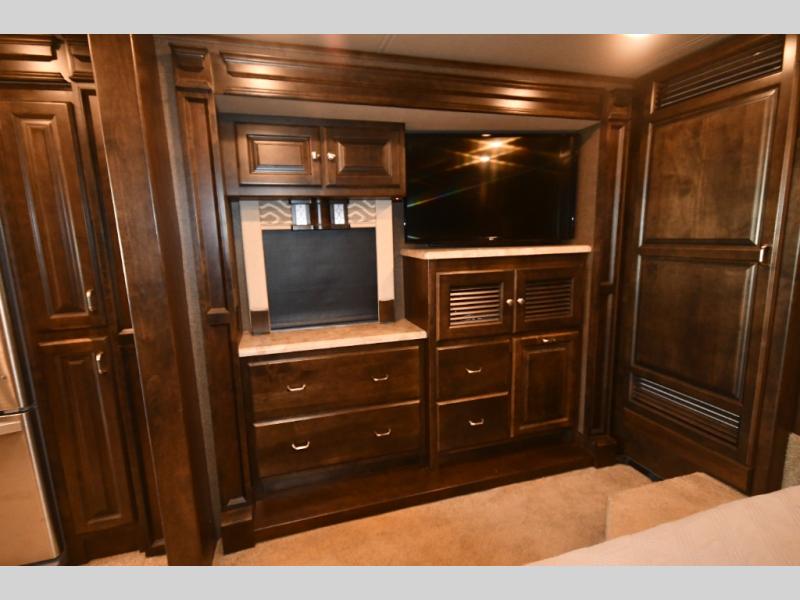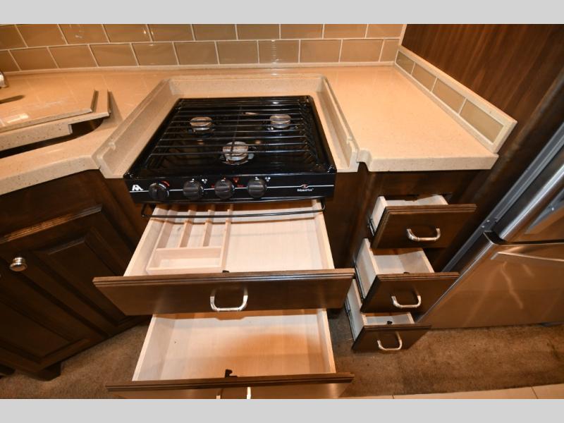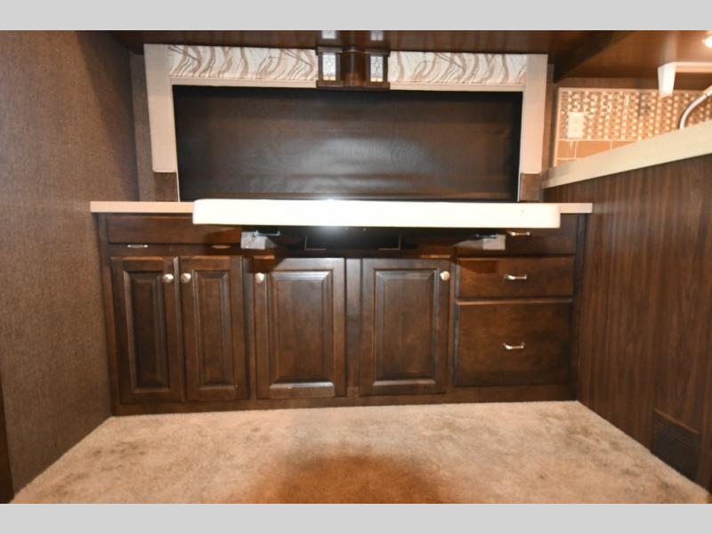 • Second slide-out with overhead cabinets, drawers, and flat panel TV
