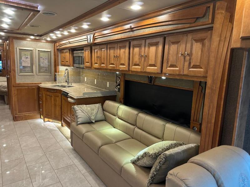 At the front of the Phaeton 36 GH, you will find more overhead cabinets as well as a center mounted TV.