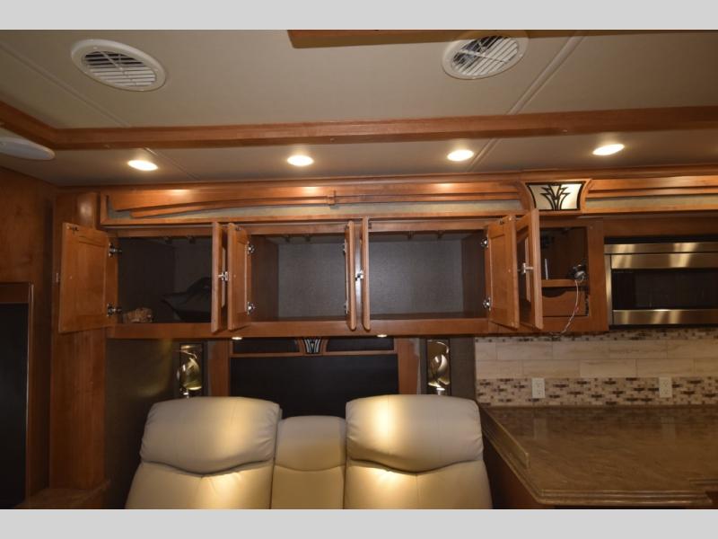 Up front, you'll find overhead storage, a center-mounted TV, and a choice of versatile seating: