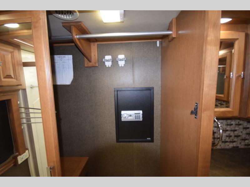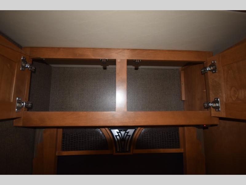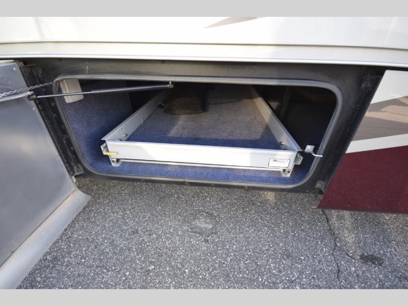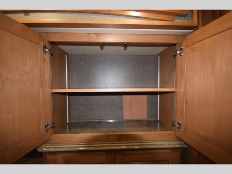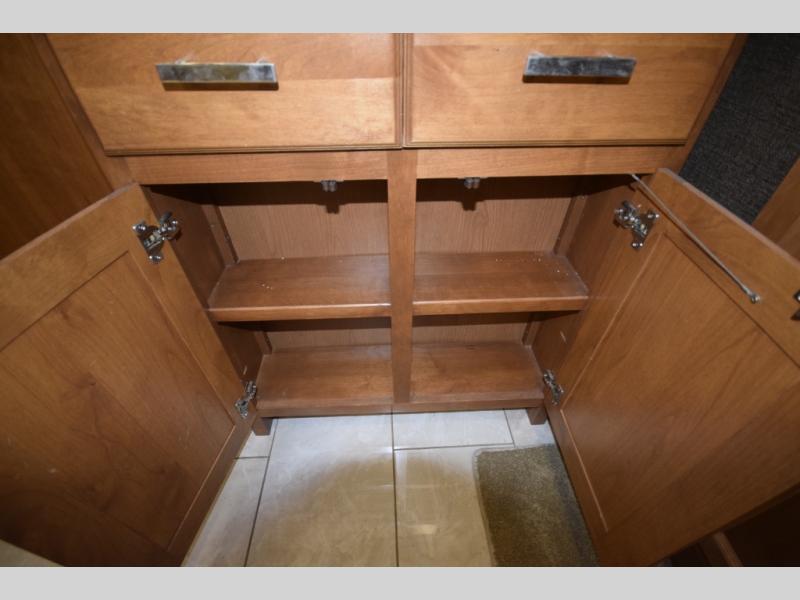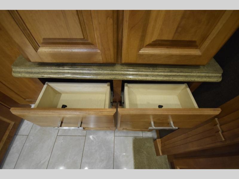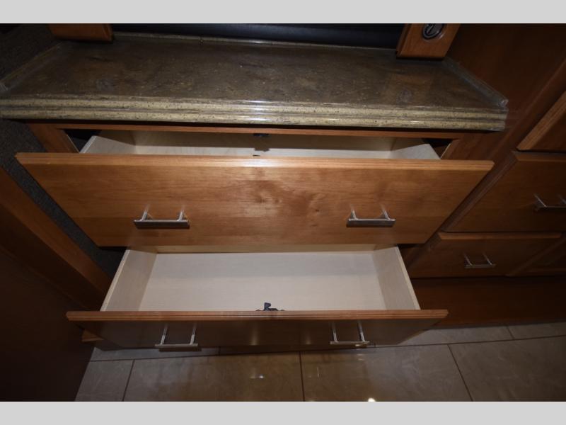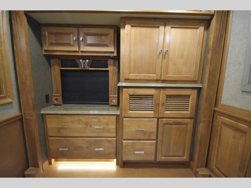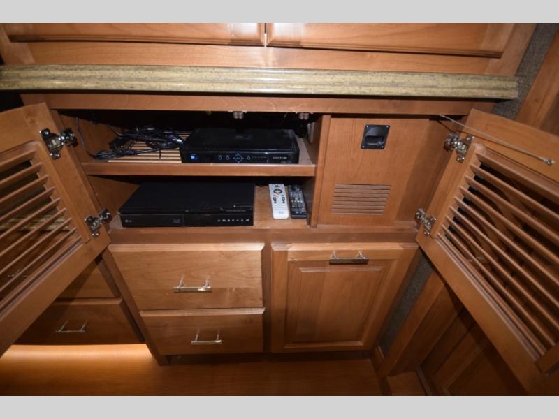Opposing slide with TV, drawers, and storage