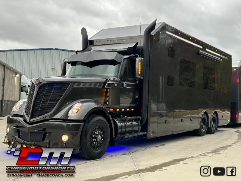 Black Sunshine" 2017 Turn Key Industries International LoneStar Motorhome & 2019 Wildside 38' Liftgate Race Trailer 600HP Cummins 18SPD Auto LOADED! - Chase Motorsports Coach & Trailer Sales Dylan Thompson 1212 Brown St Paducah, KY 42003 (270) 556-8461 - Cell (270) 442-4273 - Office www.chasecoach.com