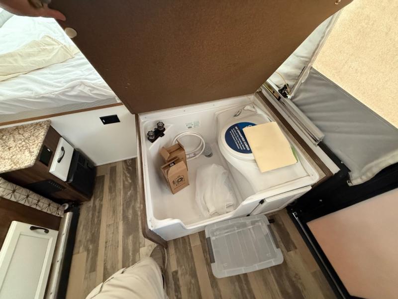 There is a built in shower and convenient Thetford cassette toilet with electric flush, and so much more!