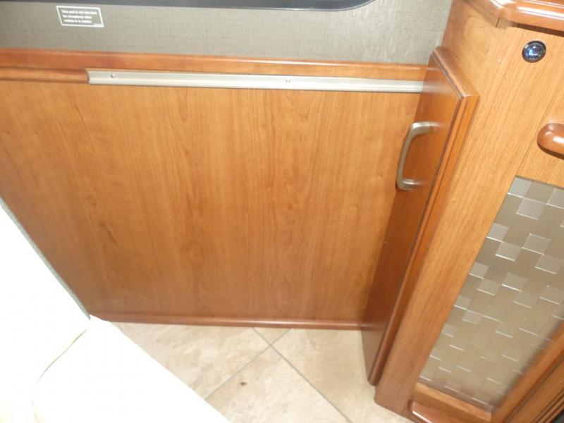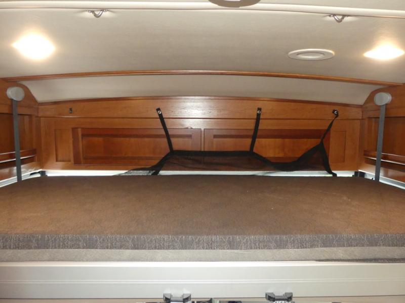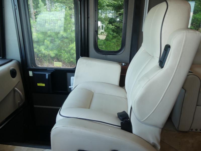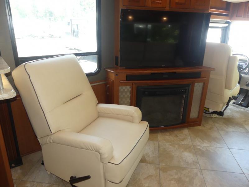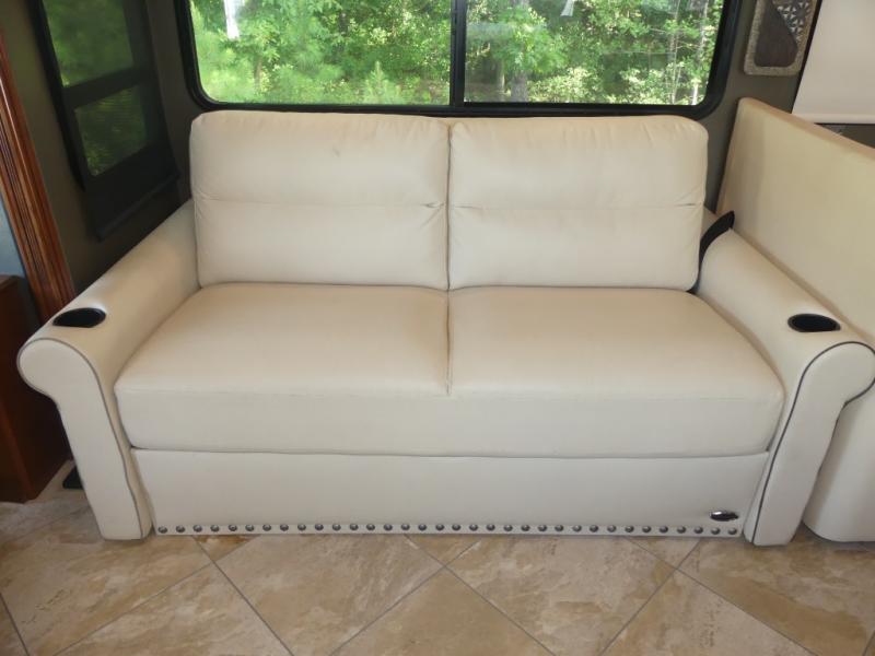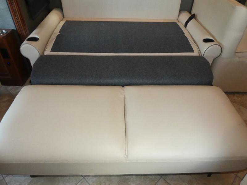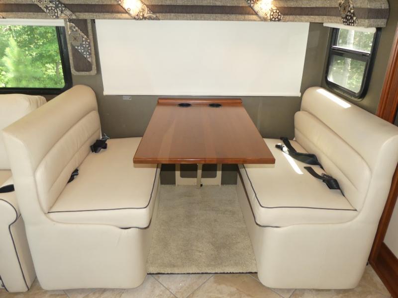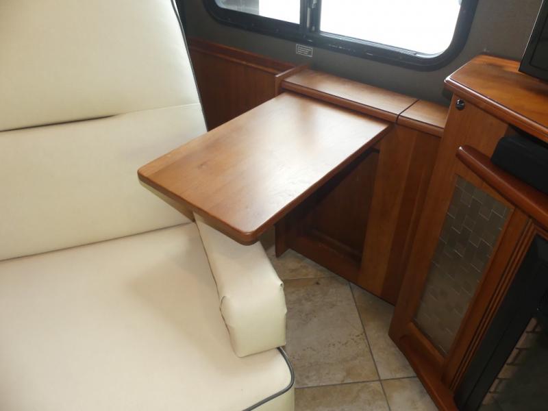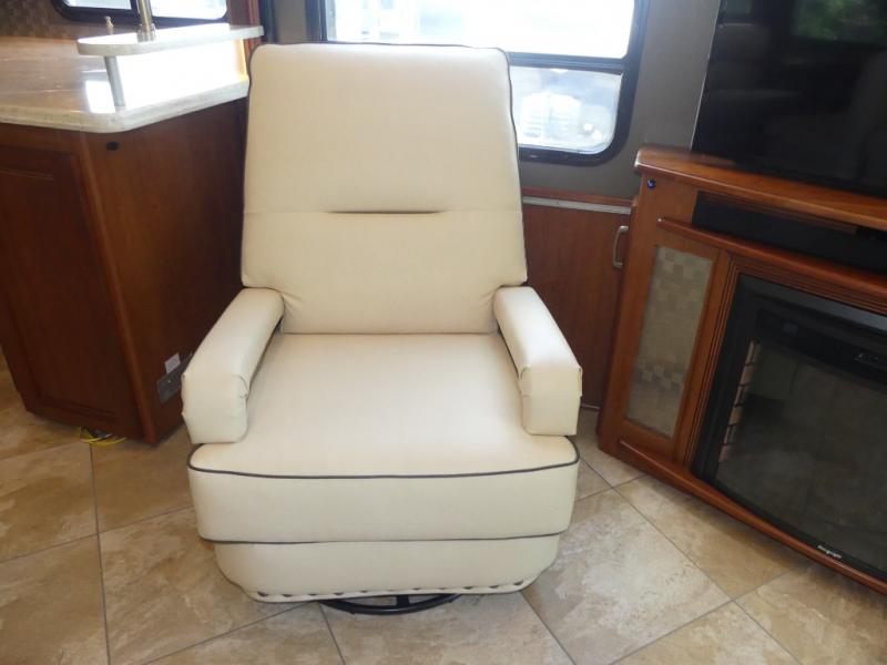 Enter model 36G in front of the passenger seat. Looking back you will see a spacious interior with a slide out Flexsteel Fold-n-Tumble sofa and Benchmark dinette on your left. Notice the seat belts which are great for rear travelers. Opposite you will find a recliner with pull-out flip-out table, and a corner location for the 48" HDTV, and optional fireplace if you choose to add. Up front the two captain's chairs swivel to face the living area for added seating for friends and family. Plus you can choose an optional StudioLoft bed above the cab for additional sleeping space when needed that is 48" x 80".