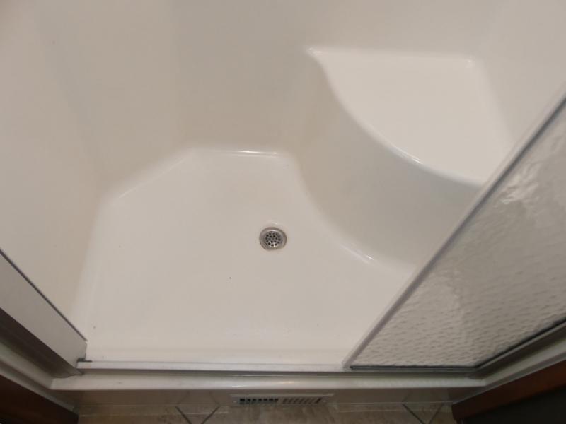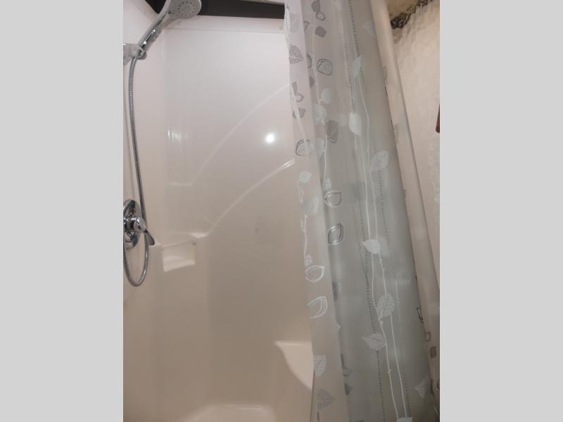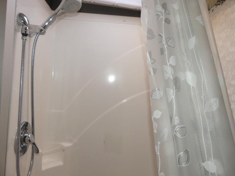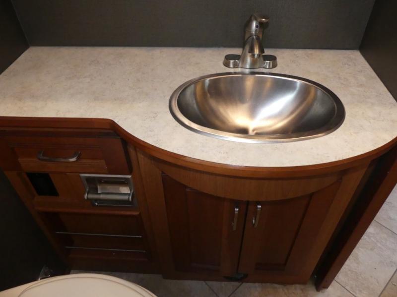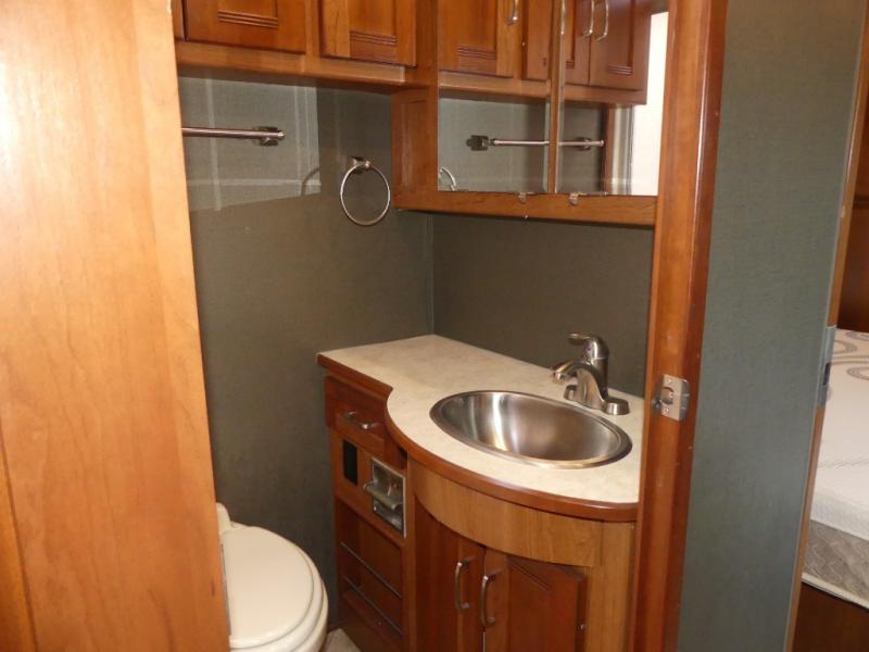 The complete bath is also centrally located and provides a shower, toilet, and vanity with sink, plus overhead storage.