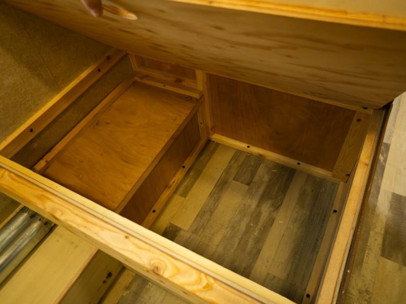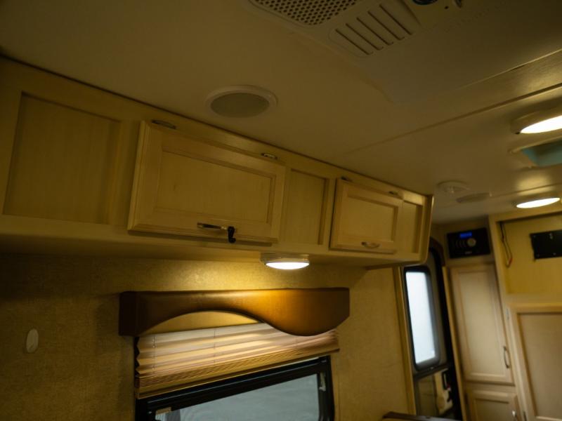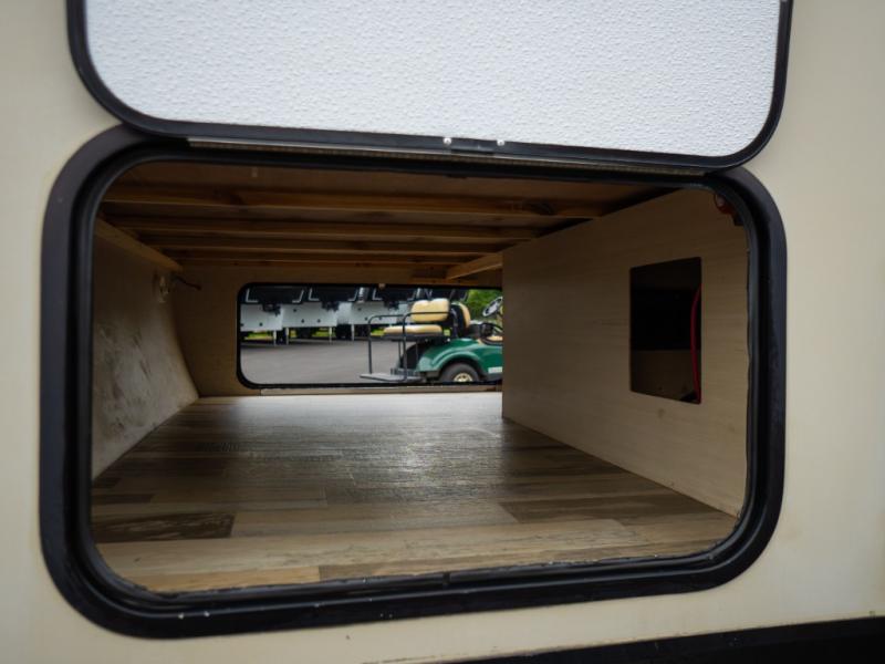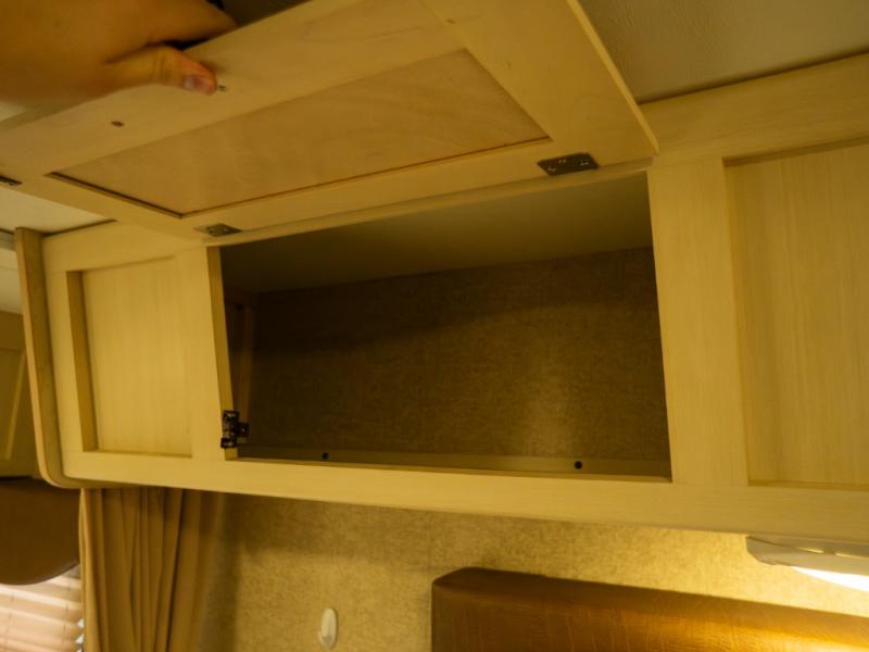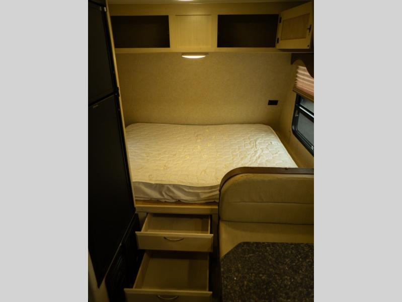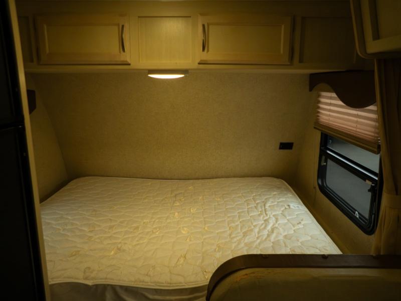 There is a front queen size bed for a comfortable night's rest that includes overhead storage along the front wall, plus so much more!