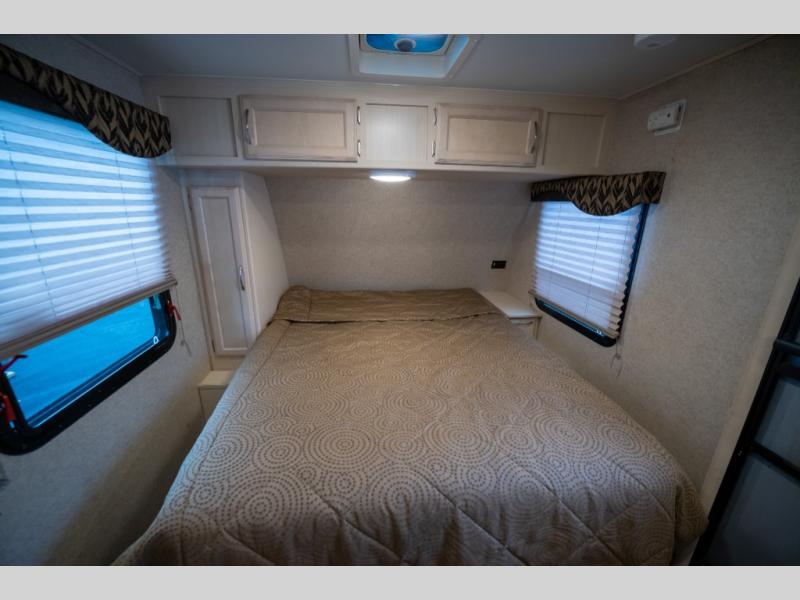 A single slide, rear bathroom, and fold-up queen bed are just a few of the features that you'll find inside this Micro Minnie 2106DS travel trailer by Winnebago Industries Towables.