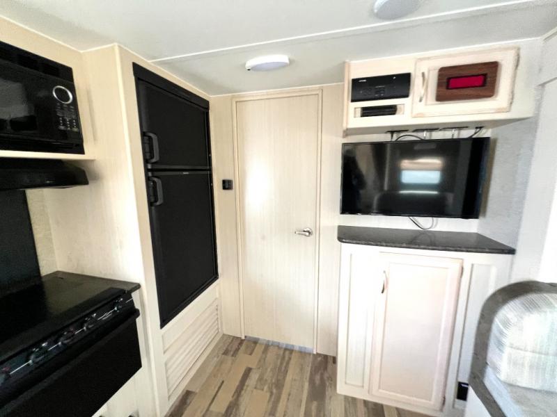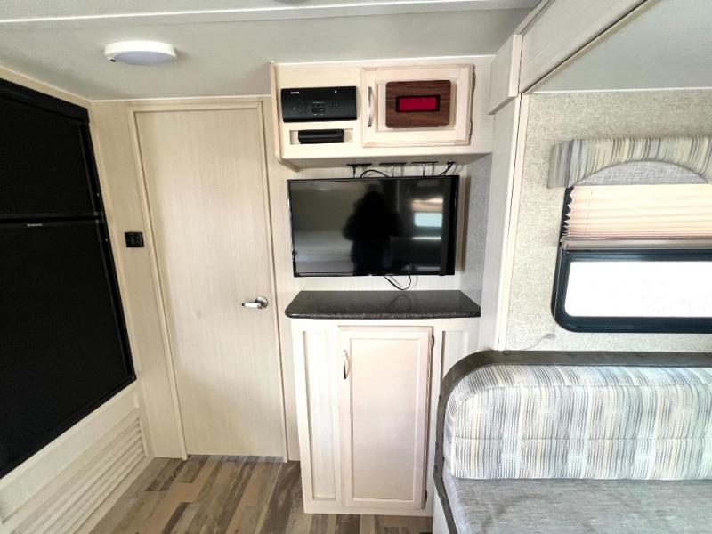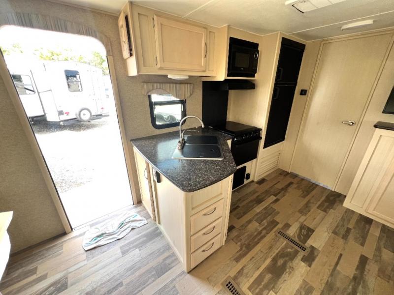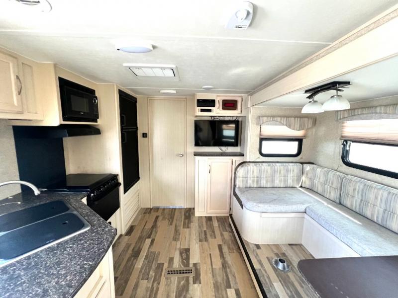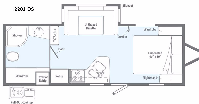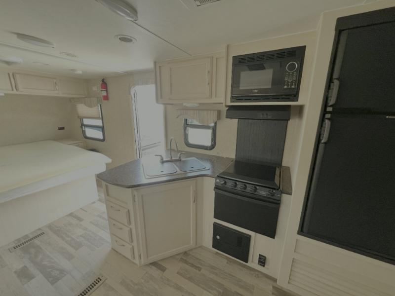 Enjoy traveling with this Minnie travel trailer model 2201DS in tow! This model features one large slide out for added interior space, a spacious rear bath, an outdoor kitchen, plus so much more.