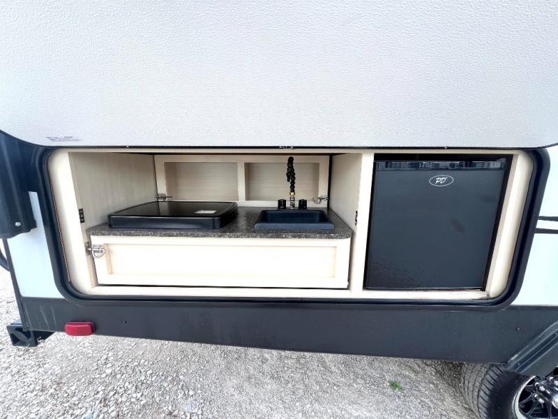 On the outside the chef in the family will enjoy the featured pull-out two burner cook-top and sink, plus exterior refrigerator, and so much more!