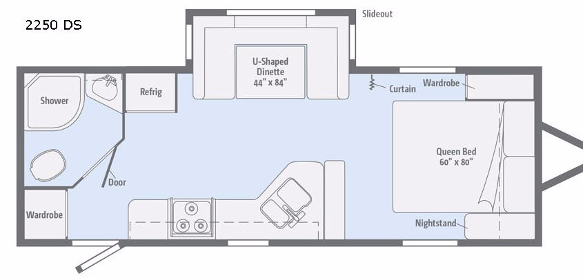 Enjoy years of travel with family and friends with this Winnebago Towable MINNIE travel trailer. Model 2250 DS offers a rear corner bath, one large slide out for added interior space, plus all of the basics to keep you comfortable while away from home.
