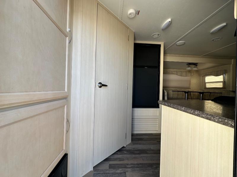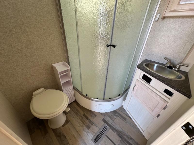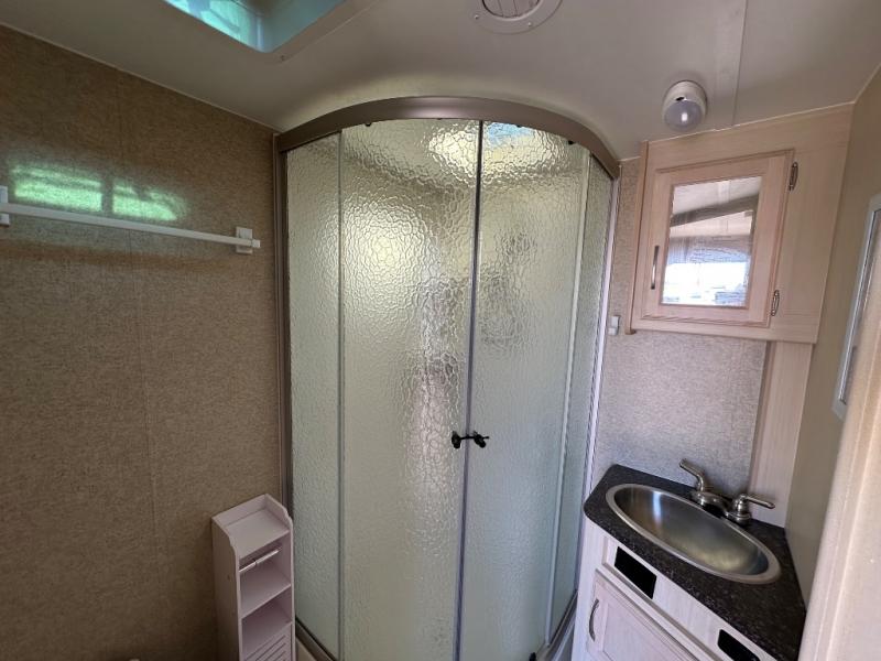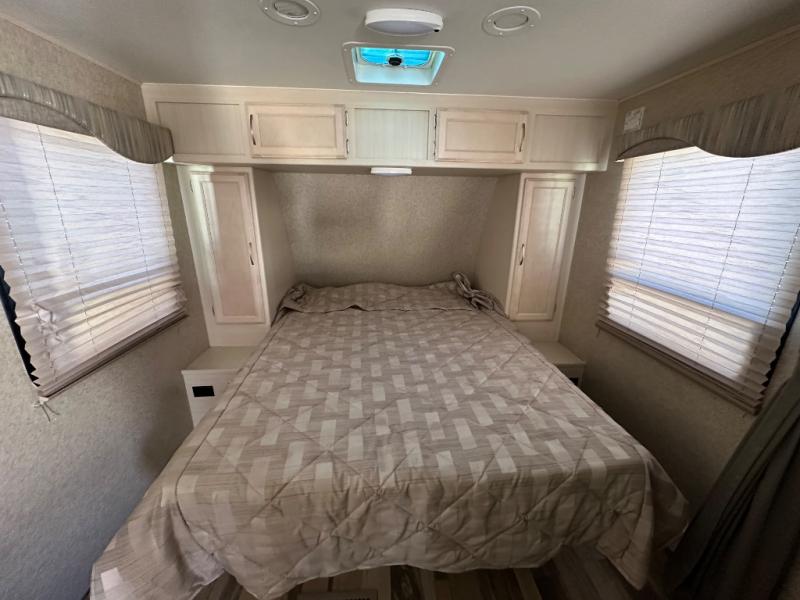 In the very front of this unit you will find a comfortable queen size bed with overhead storage, one nightstand, and one bedside wardrobe. There is a privacy curtain to close off the bedroom area from the rest of the unit if you wish, plus so much more!