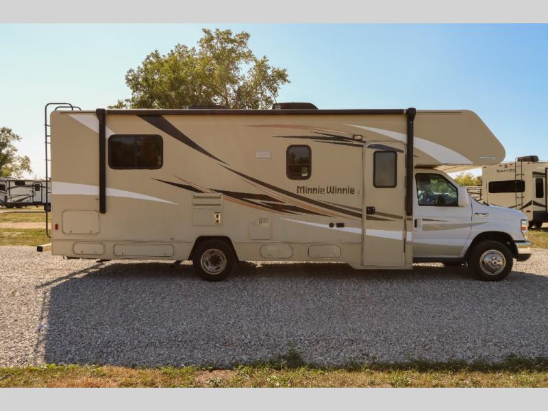 This Winnebago Minnie Winnie class C coach offers a single slide, and sleeping space for six making it a perfect camping motor home.