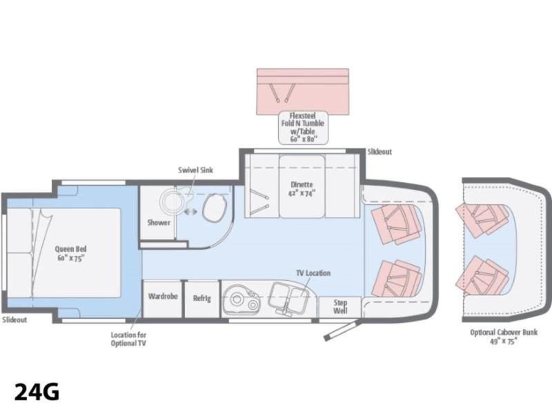 Take to the road in this Winnebago Navion coach and know that you will have everything you need to enjoy spending time away from home. Model 24G features double slides for added space, a rear bedroom, and sleeping for four or five.