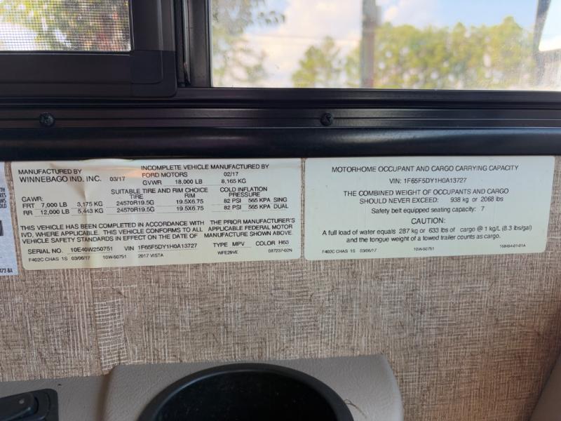 Used 2017 Winnebago Vista 29VE Motor Home Class A