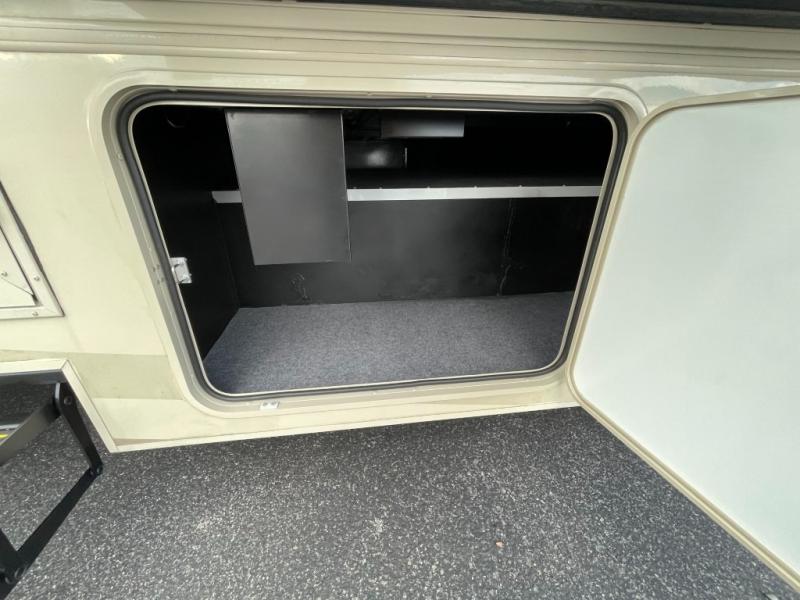 A folding door gives the rear bedroom a bit of privacy. Inside you will find a queen bed slide with nightstands and overhead storage, plus wardrobes and a storage cabinet where you can also add the optional TV, plus so much more!