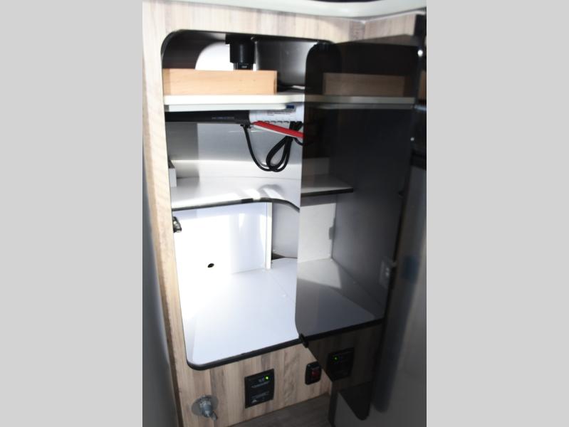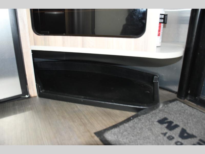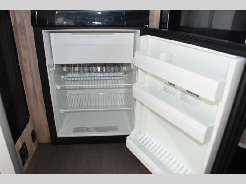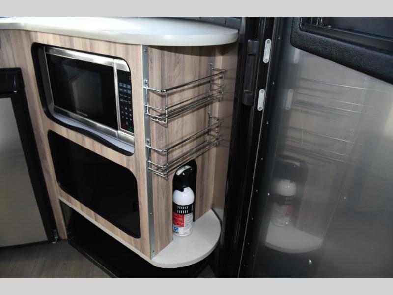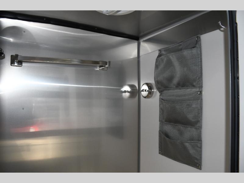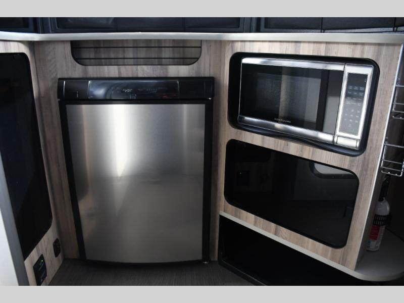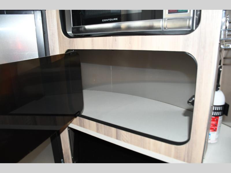 The compact galley includes essential appliances and smart storage, making meal prep simple and efficient. A convenient wet bath adds self-contained capability, allowing you to camp comfortably wherever your adventures take you.