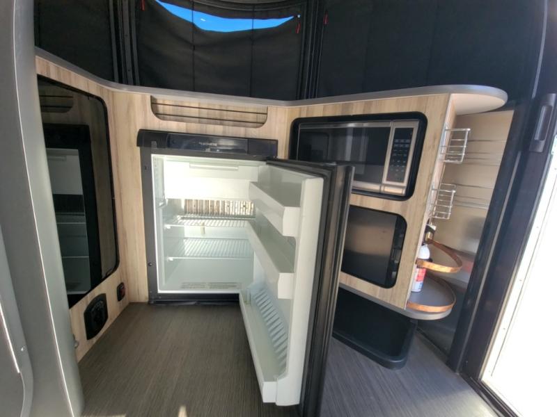 If you are seeking adventure with less hassle this Basecamp Std. Model travel trailer might just fit your fun lifestyle. It's easy to hitch up and provides plenty of comforts of home for off-road and off-grid adventures. The front kitchen allows you to store perishables in the refrigerator and make meals on the two-burner cooktop. Just imagine relaxing on the bench seats with a pedestal table in between while your storage is under your seat. You can configure the sleeping arrangements into one full bed or two smaller beds whichever you prefer. The on-board wet bath comes in handy during the nighttime and daytime, and the retractable clothes line allows you to hang a wet towel or two. Check this model out!
