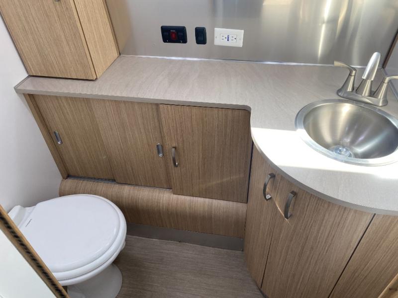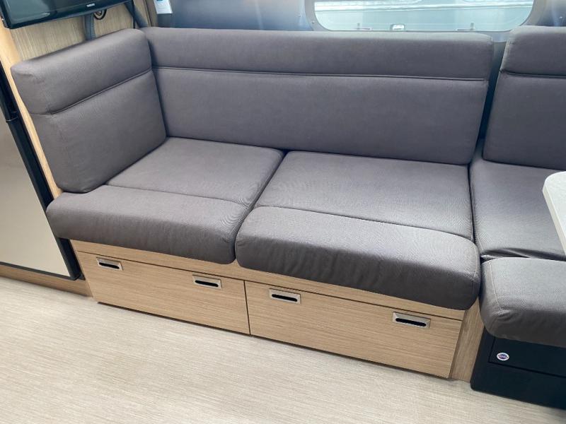 After you reach your favorite destination and set up camp, then come inside and enjoy the comforts throughout this Airstream Flying Cloud 25RB. The front dinette is a great spot to linger after your meals and enjoy another cup of coffee. Next to the dinette along the roadside there is a sofa. As you head toward the rear you will find a split bathroom with a shower along one side and a private toilet area and sink across the hall. In the rear bedroom there are two twin beds.