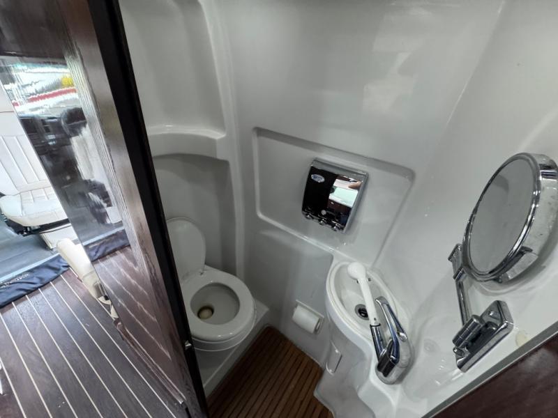 As you move toward the rear notice a convenient wet bath on your left including a toilet, small sink and shower.