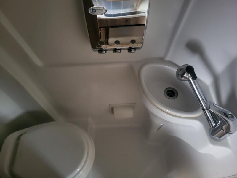 As you move toward the rear notice a convenient wet bath on your left including a toilet, small sink and shower.