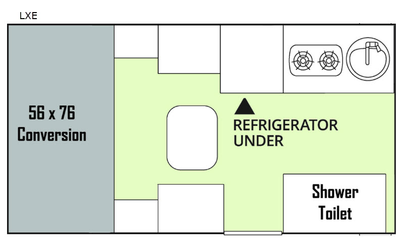 When you are ready to start your next camping trip, choose the LXE Aliner a-frame camper! You will be impressed with all of the space inside this model, plus it is lightweight and easy to tow behind your vehicle. You will enjoy plenty of natural lighting throughout this model with the (2) skylights. Your perishables can be stored in the 3.0 cu. ft. refrigerator. With the shower tub and toilet combo you can get ready for the day in the comfort of your camper without having to use the campground facilities. At night head to the rear of this model where you can sleep on the 56" x 76" conversion bed.