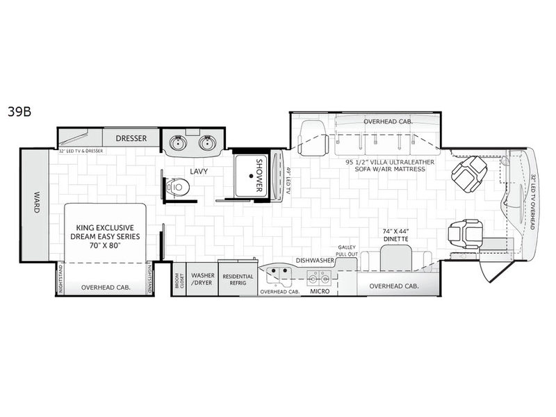 | TV Info | LR 49" LED HDTV, Front Cab 32" LED HDTV, BR 32" LED HDTV, Ext. 43" LED |