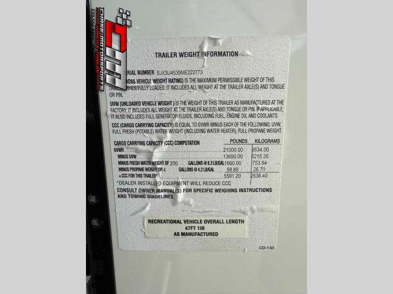 2018 with 2021 ATC Game Changer Pro Toy Hauler Specifications