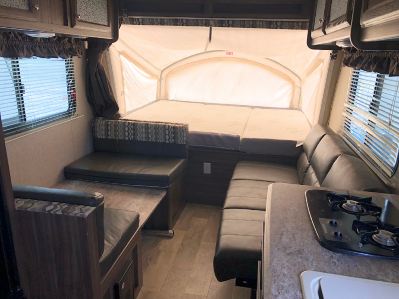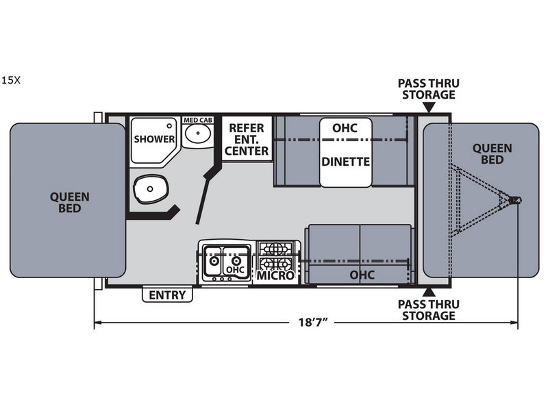 This Apex Nano model 15X is the perfect expandable travel trailer for a family of 4-6 that enjoys camping in the great outdoors but needs a few comforts of home inside. The full corner bath is conveniently located across from the entry door for easy access in and out when having fun outside. Two comfortable queen size tent end beds can be found up front and in the rear for a great night's rest, plus the dinette and sofa provide extra sleeping space if needed. You will find plenty of storage throughout on the interior along with a front exterior pass-through compartment that is accessible from either side for your outdoor camping gear, plus more. Take a look today!