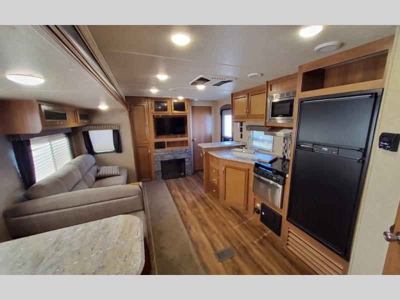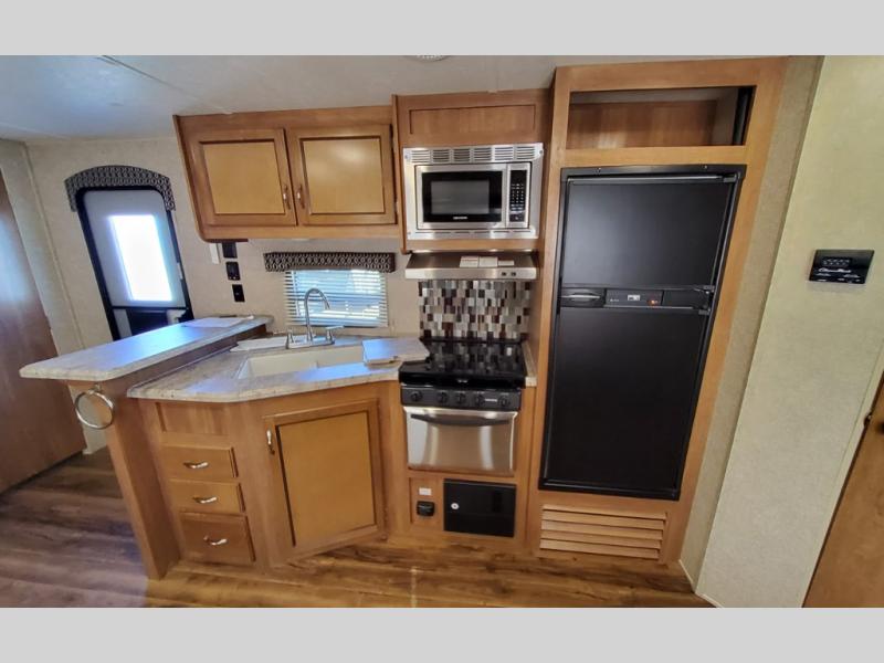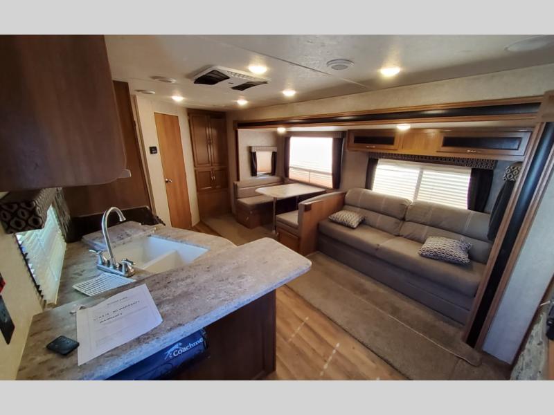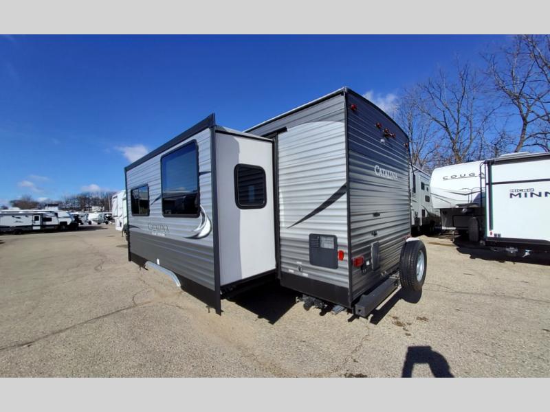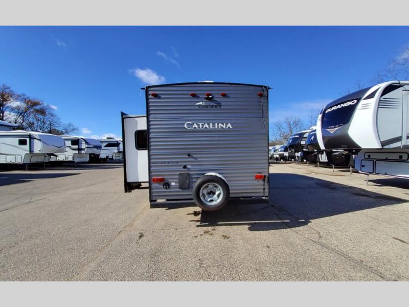 For any camping trip whether near or far you will want this single slide out Catalina Legacy 243RBS by Coachmen. After you set up camp then come relax inside at the dinette or sofa, remember both the sofa and dinette can convert into additional sleeping space or in place of the dinette you can choose to add an optional free-standing table with four chairs. Mom and dad can retreat to the private front bedroom where there is a queen bed. In the kitchen there is a breakfast bar plus you can add two optional bar stools. The rear bathroom features a 34" x 34" shower with glass door plus all of the other amenities needed to get ready for the day. Outside there is a 15' awning which provides plenty of shade during the day and in the evening you can sit under the awning visit with family and friends just a bit longer.