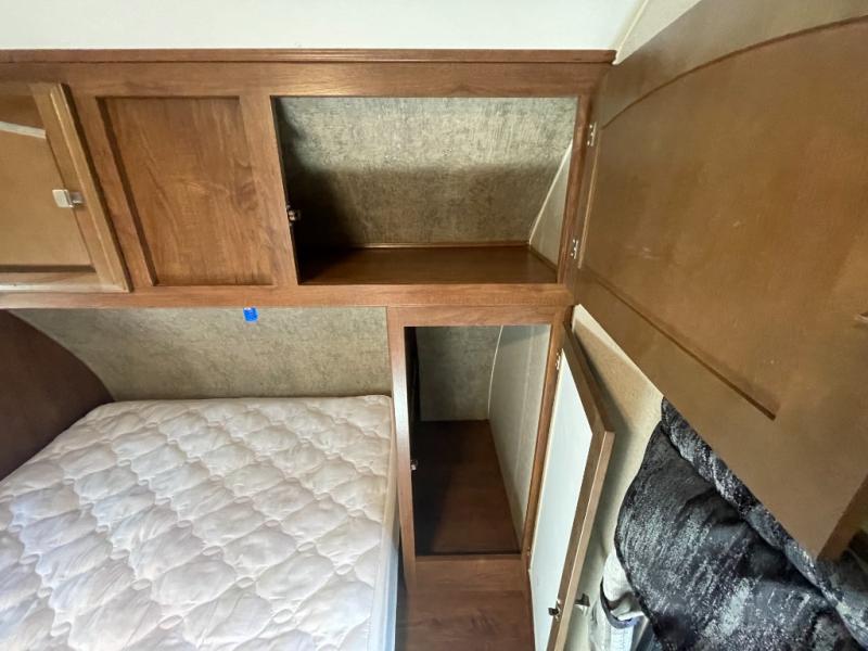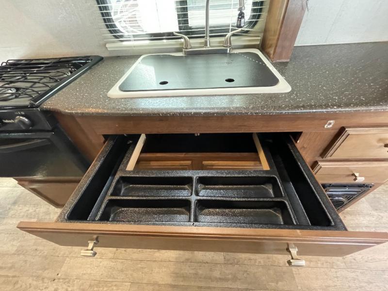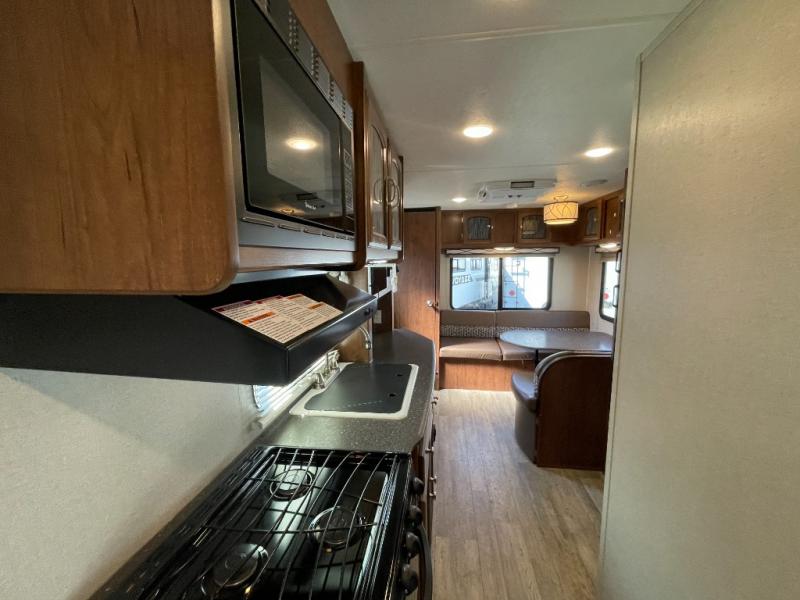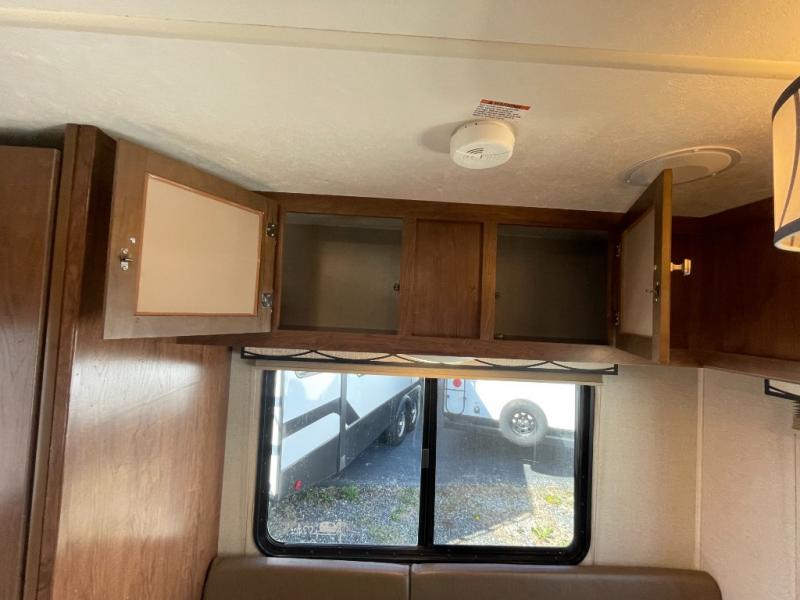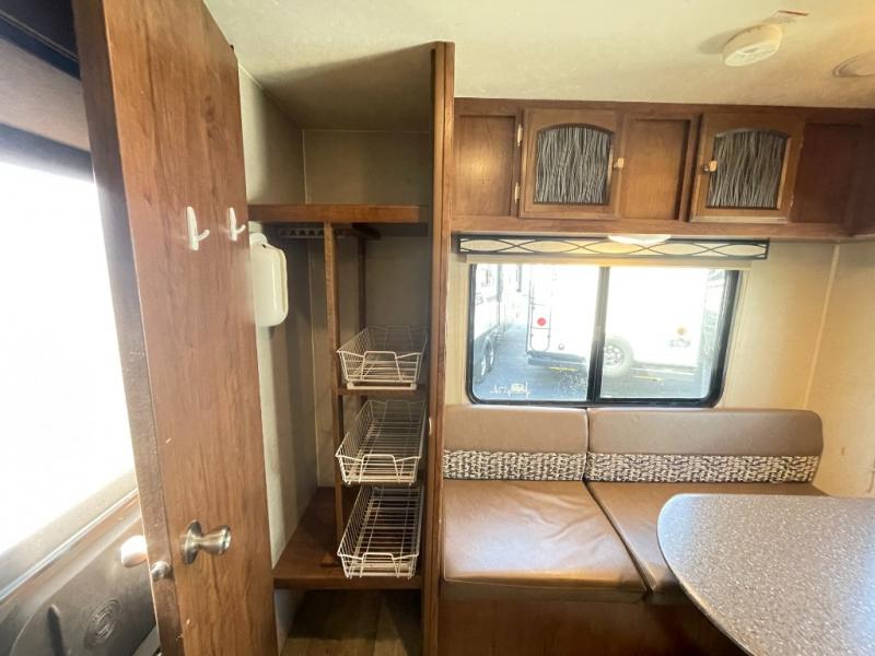 Traveling lightweight makes moving down the road easier and less stressful. This Freedom Express Ultra Lite 204RD travel trailer offers sleeping space for 3-4, full bath amenities, and more! The unit is satellite ready and includes multiple USB locations to keep the electronics charged the whole time. The family can eat meals and play cards at the booth dinette, and put on their outdoor shoes while sitting on the extended dinette cushion. Storage isn't a problem with the two pantries and overhead cabinets, plus the exterior pass-through compartment allows for larger items like fishing poles, grilling utensils, and outside camping chairs.