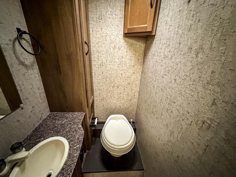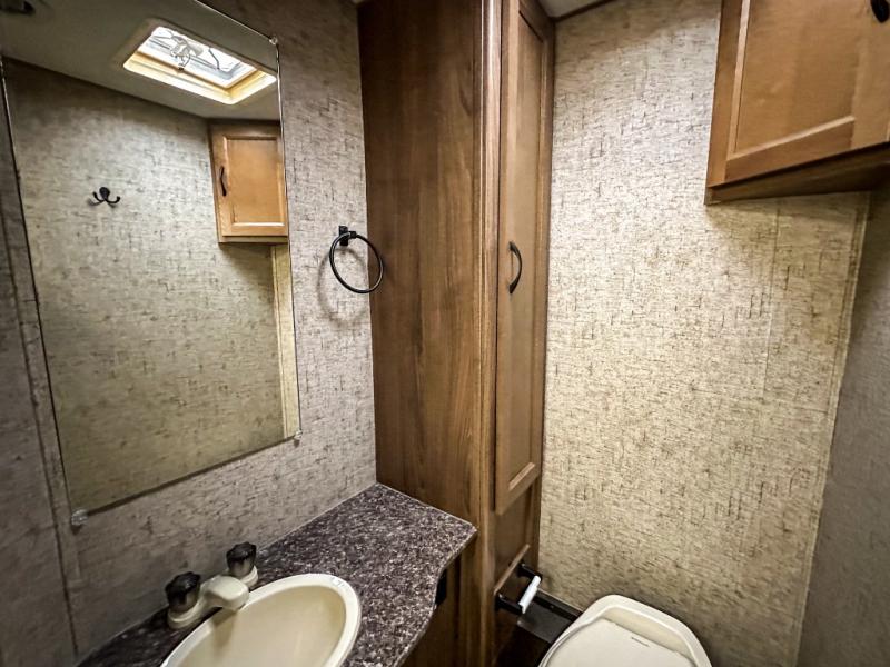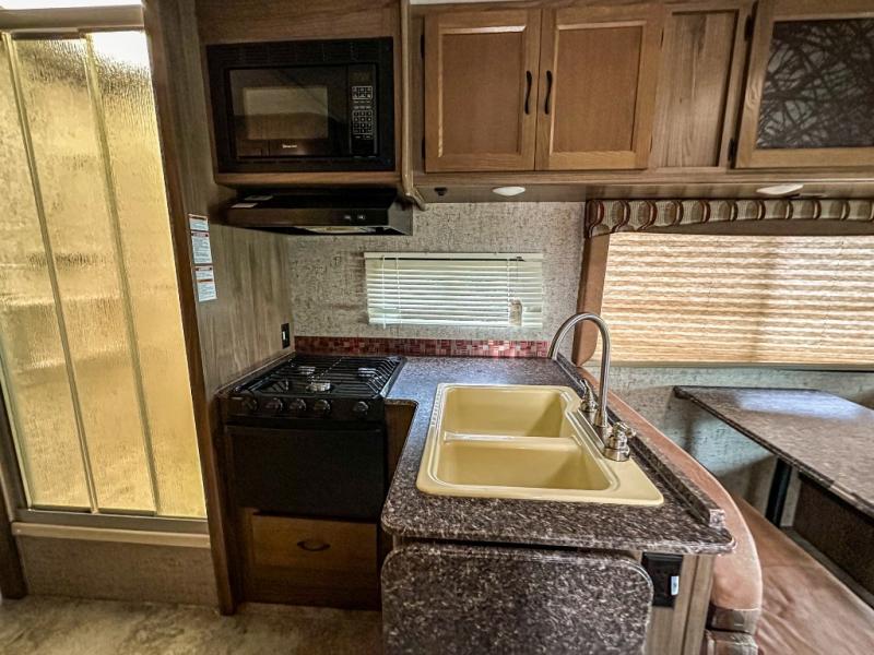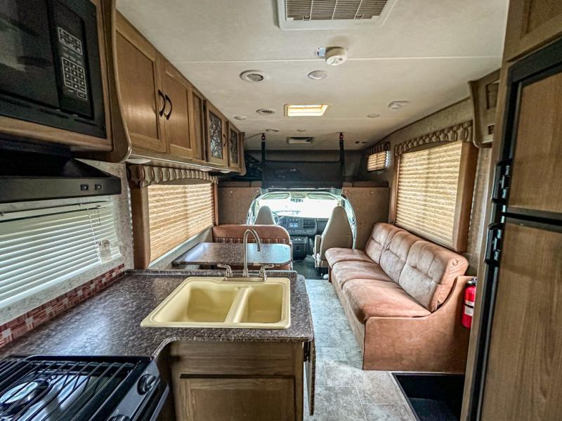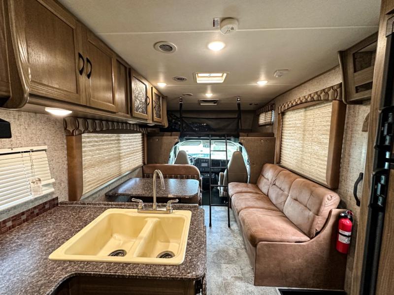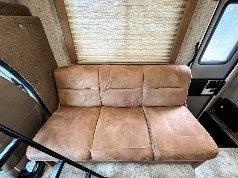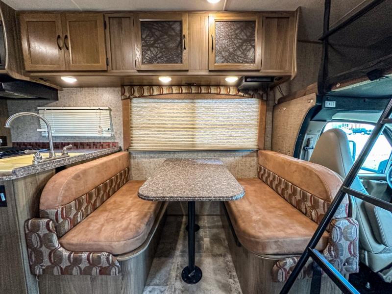 With this Freelander motorhome you will get a reliable and quality Class C gasoline coach that contains more factory-installed features than anyone else. This coach features Azdel composite walls and a fiberglass exterior to keep the entire structure lightweight. This Freelander also features larger holding tanks, like the 50 gallon fresh water tank and 68 LB propane tank, and since this model has been prepped for solar panels, it makes it easier for you to go off-grid whenever you choose to do so. Inside you will enjoy a spacious interior that includes Coachmen's Even-Cool AC with residential duct work which will provide you with a much quieter and more efficient way to cool things down in warmer weather. LED lighting and high-quality furnishings give this coach a touch of elegance, and the 1 1/2" transition step from the cab to the coach makes moving back and forth between the two much easier. It also aids in allowing passengers seated in the rear to see out of the large front window.