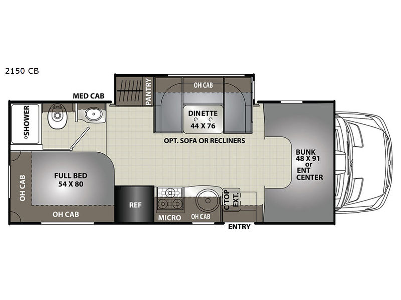 Dreaming of having a comfortable place to go during your kid's track meet while you wait for him to compete? Do you long for a vacation but prefer to sleep on your own bed? It's time to jump into this Prism 2150 CB class C diesel motor home and hit the road. You will find the journey is as comfortable as the sleeping arrangements. Everyone can gather around the U-shaped dinette, lay on the cab-over bunk or visit outside under the awning. You will appreciate the convenience of a private shower and toilet, plus bathroom sink just outside the door. And the cook will surely love heating up leftovers in the residential size microwave for quick meals when on the go. Come see why this RV just makes sense!