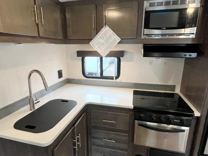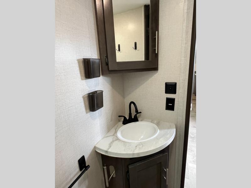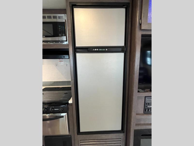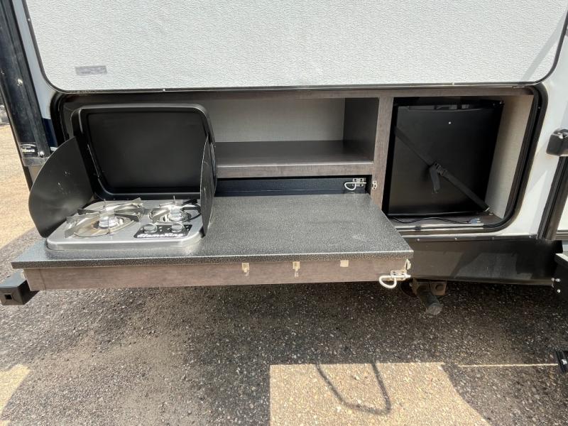 You can easily load up the whole family, and a few friends in this single slide out Sunset Trail Grand Reserve SS28BH travel trailer. This CrossRoads model features a rear set of 50" x 74" bunk beds for your kids and across from the bunks is the rear bathroom. At night mom and dad can retreat to the private front bedroom to get a good night's rest. Throughout this model there is plenty of overhead cabinets plus a large pantry for storage. The chef in the family will enjoy the outdoor kitchen. Here you can easily store drinks or snacks in the refrigerator or fix your evening meal at the two burner range!