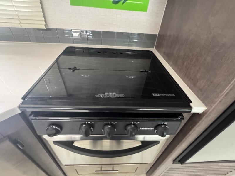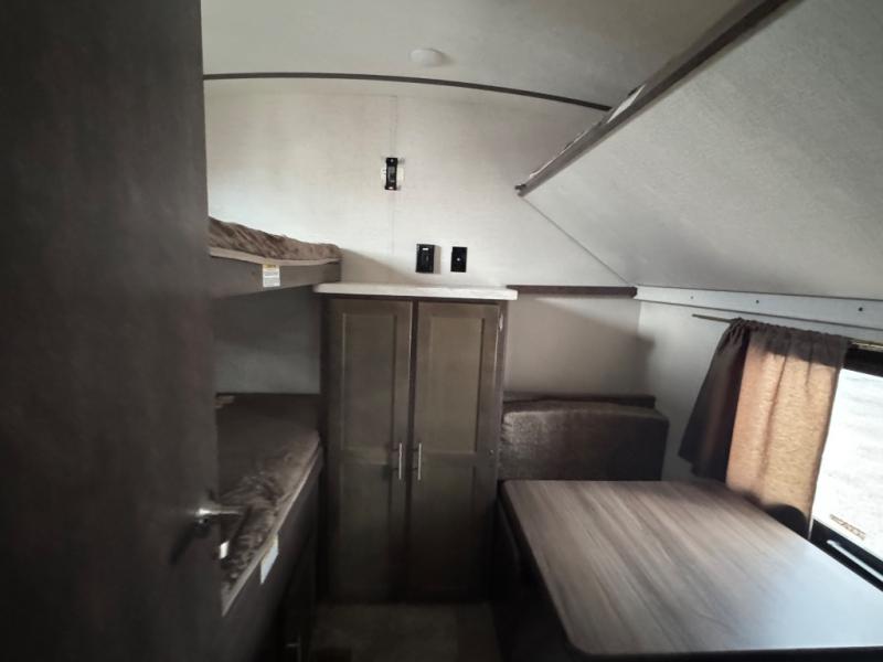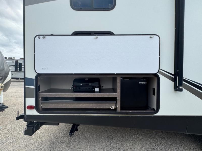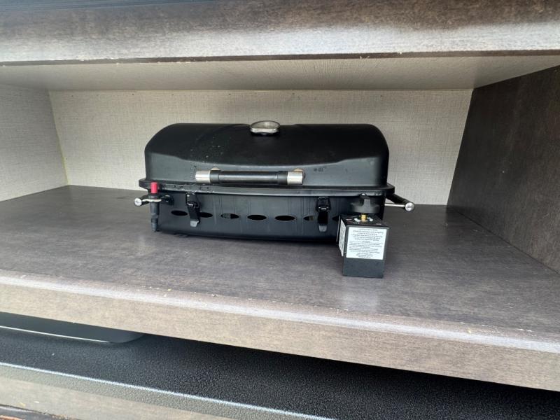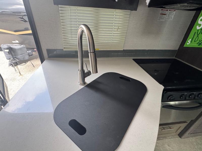 If you are looking for a trailer that will comfortably house all of your family and your luggage, then you are looking for this Sunset Trail Super Lite travel trailer. From its ability to sleep nine people, to its exterior pass-through storage with motion-activated LED lights, this trailer gives you plenty of space for a successful road trip with the family, and because it has both a private front bedroom and rear bunkhouse, you won't feel as if you're living on top of each other. For those nights when you want to soak up the fresh nature air, the outdoor kitchen is the perfect place for you to continue your dinner preparations.