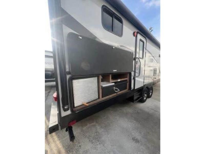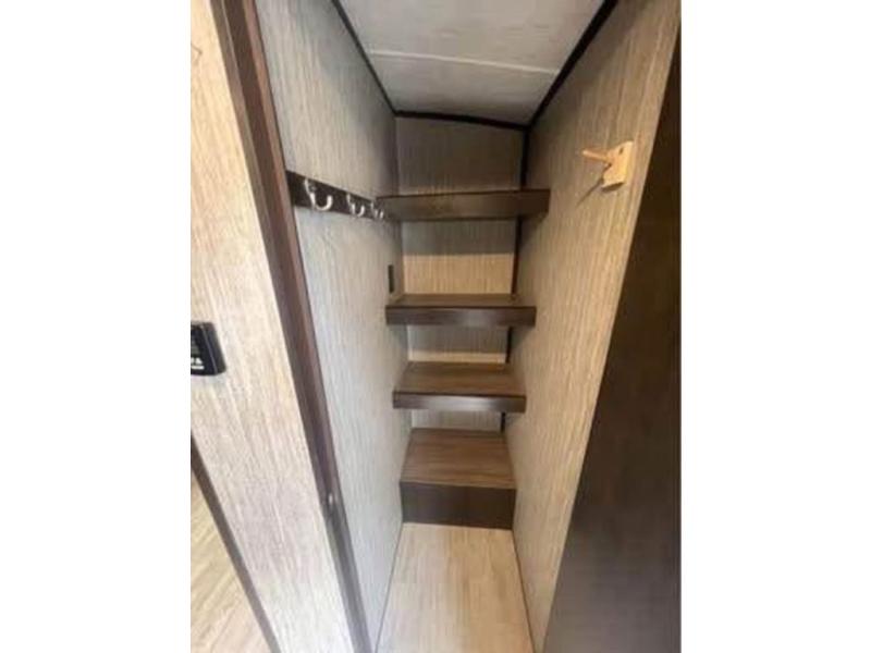 Because this Cruiser RV trailer has been built with aerodynamic and light-weight construction, you can pull this unit with a half-ton truck, giving it a better fuel efficiency rating all around, and the Flex Foil insulation that has been installed in the frame cavity allows you to take this trailer for extended season camping because it can withstand colder climates. This trailer may be light in its construction, but it is packed full of helpful amenities, such as the hidden storage cabinets that allow this unit to utilize all available space to the fullest, and the oversized exterior pass-through storage with LED lighting lets you bring along all of the camping gear you may need.