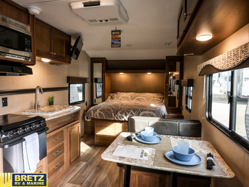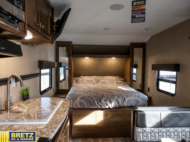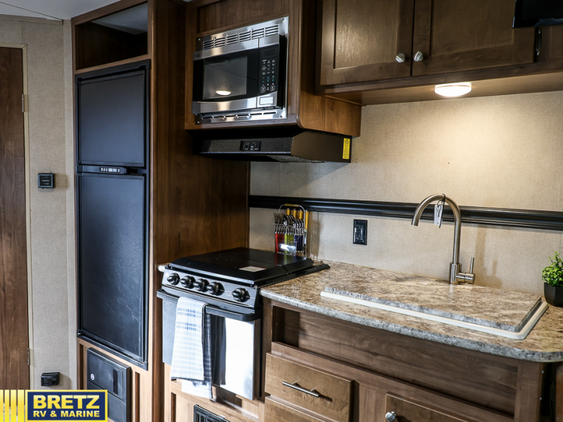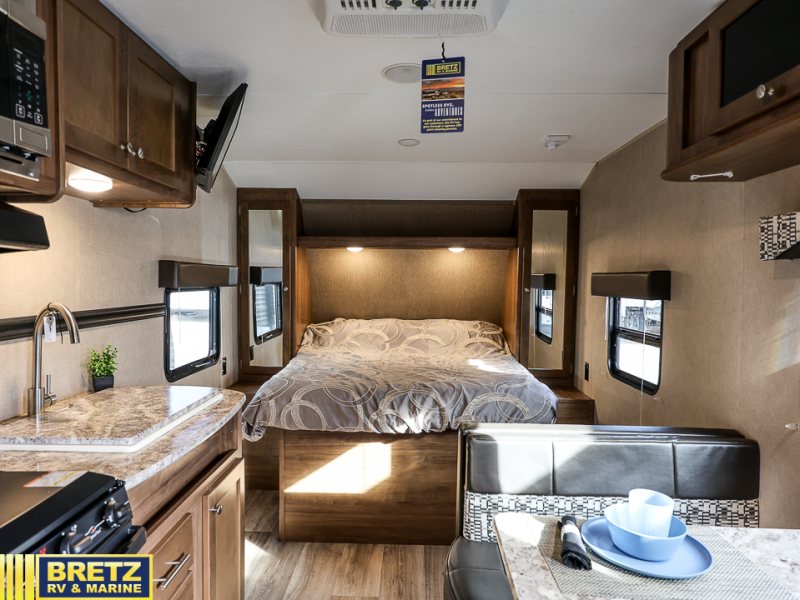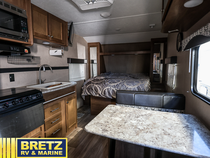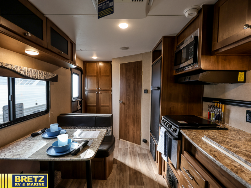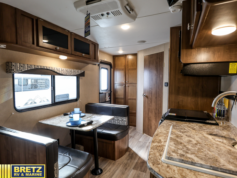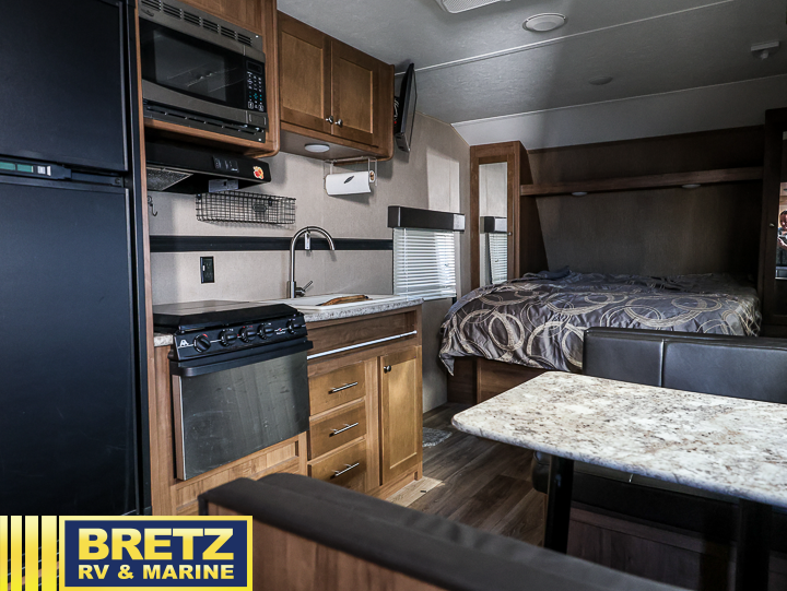 This Aspen Trail travel trailer is perfect for a couple or smaller family that enjoys traveling with their own accommodations. Just imagine drinking your morning cup of coffee at the dinette while looking out the windows. You can start thinking about which outdoor activity you will do next. This model 1900RB allows you to sleep in a comfortable bed, make meals in the kitchen, and get cleaned up in a full bath. Having full bathroom and kitchen amenities allows you to travel to your favorite campground, fishing hole, or to your grandkids' away games without missing any at-home amenities. Take a look, you will be glad you did.