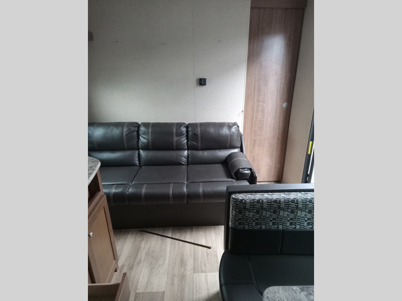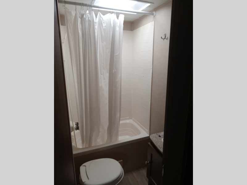 Thinking about finding the perfect family travel trailer? This Aspen Trail 2710BH might just complete the "must have" list to make everyone happy and comfortable. The kids will have the choice to sleep on the double size bunk beds with a privacy curtain, or the furniture once folded down for the evening. And you and your spouse will have a master bedroom all to yourselves. The kitchen appliances allow you to make meals and snacks to keep everyone fueled for the family hike each day. You have a full bathroom including a tub/shower for everyone to get cleaned up before dinner and bedtime. There is even a place to store your hiking poles, charcoal, and outdoor gear in the mega storage.