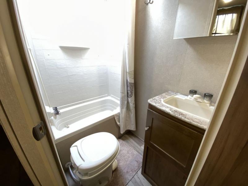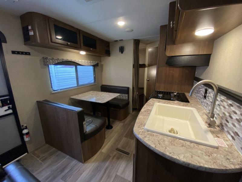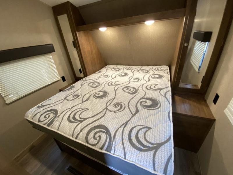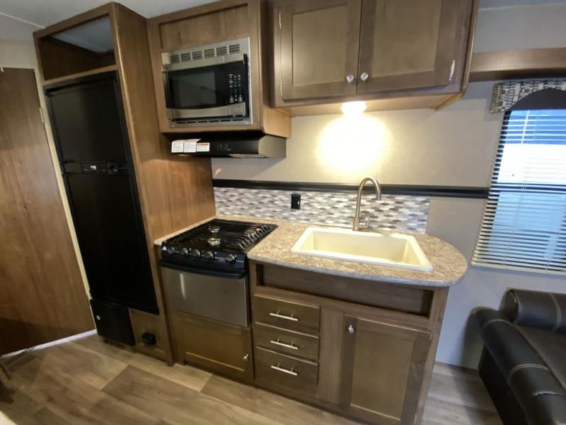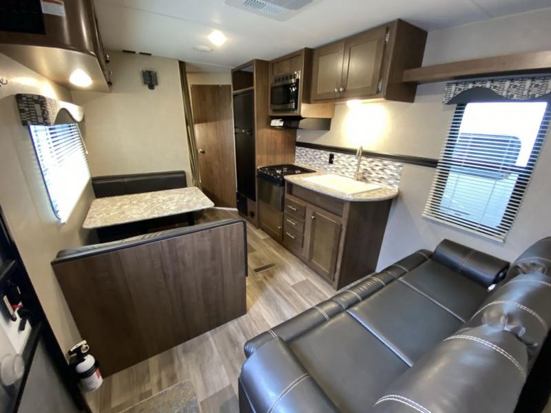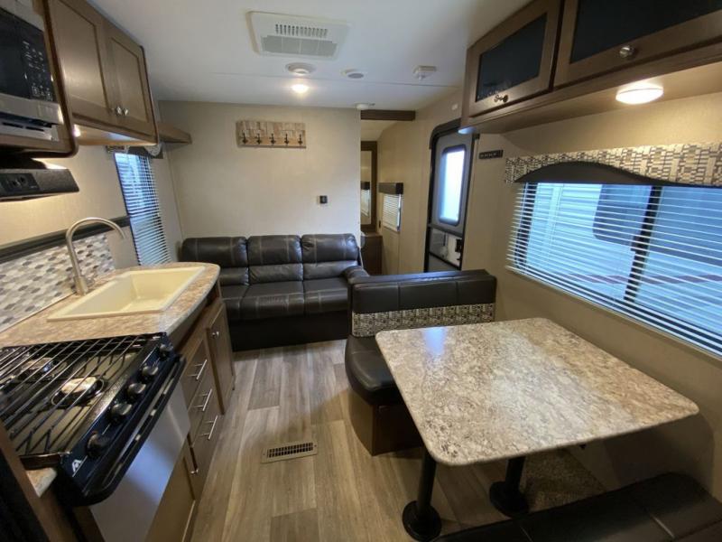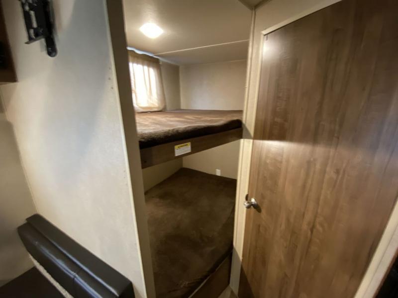Thinking about finding the perfect family travel trailer? This Aspen Trail 2710BHWE might just complete the "must have" list to make everyone happy and comfortable. The kids will have the choice to sleep on the double size bunk beds with a privacy curtain, or the furniture once folded down for the evening. And you and your spouse will have a master bedroom all to yourselves. The kitchen appliances allow you to make meals and snacks to keep everyone fueled for the family hike each day. You have a full bathroom including a tub/shower for everyone to get cleaned up before dinner and bedtime. There is even a place to store your hiking poles, charcoal, and outdoor gear in the mega storage.